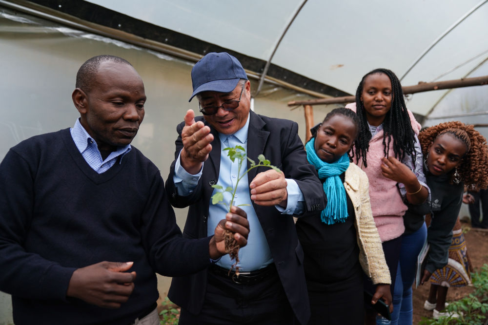 2023年9月18日,在肯尼亞納庫(kù)魯郡舉辦的中非農(nóng)業(yè)發(fā)展和減貧示范村番茄生產(chǎn)培訓(xùn)班上,來(lái)自中國(guó)的農(nóng)學(xué)教授劉高瓊(左二)為肯方學(xué)員指導(dǎo)農(nóng)業(yè)技術(shù)。多年來(lái),中國(guó)農(nóng)業(yè)專家在當(dāng)?shù)亻_(kāi)展了知識(shí)培訓(xùn)、技術(shù)指導(dǎo)和農(nóng)業(yè)設(shè)施修繕等工作,有效助力中國(guó)先進(jìn)的農(nóng)業(yè)技術(shù)在納庫(kù)魯?shù)貐^(qū)的示范推廣,幫助農(nóng)民實(shí)現(xiàn)增收減貧的目標(biāo)。