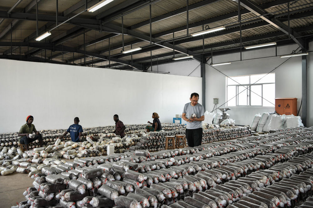 2024年8月13日,在盧旺達(dá)南方省胡耶區(qū)的中國(guó)援盧農(nóng)業(yè)技術(shù)示范中心,菌草專家陳曉斌(右)檢查菌袋。自菌草技術(shù)引入盧旺達(dá)以來(lái),當(dāng)?shù)鼐莓a(chǎn)業(yè)發(fā)展迅速,不僅為市場(chǎng)提供了豐富的食用菌產(chǎn)品,還創(chuàng)造了大量就業(yè)機(jī)會(huì)。