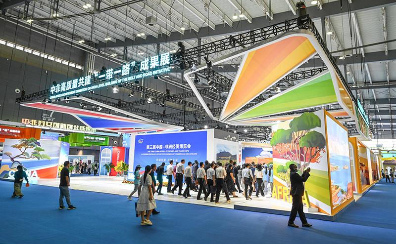 2023年6月29日,第三屆中國—非洲經(jīng)貿(mào)博覽會(huì)在湖南長沙開幕。圖為參會(huì)嘉賓在長沙國際會(huì)展中心參觀中非高質(zhì)量共建“一帶一路”成果展。