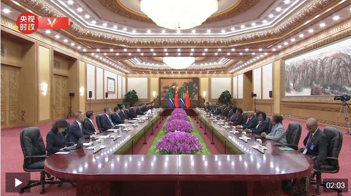 9月2日下午,國家主席習近平在北京人民大會堂同來華出席中非合作論壇峰會并進行國事訪問的南非總統(tǒng)拉馬福薩舉行會談。