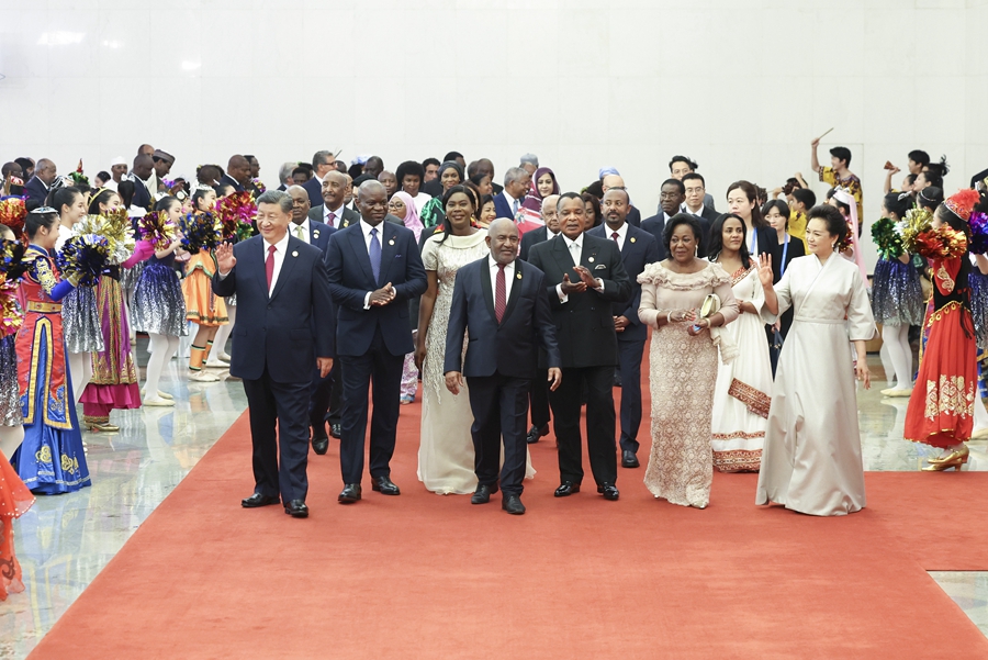 出席論壇峰會(huì)的51個(gè)非洲國(guó)家元首、政府首腦及配偶,2位總統(tǒng)代表,非盟委員會(huì)主席和聯(lián)合國(guó)秘書(shū)長(zhǎng)等貴賓陸續(xù)抵達(dá)人民大會(huì)堂。習(xí)近平和彭麗媛熱情迎接,同他們分別握手問(wèn)候,并集體合影留念。