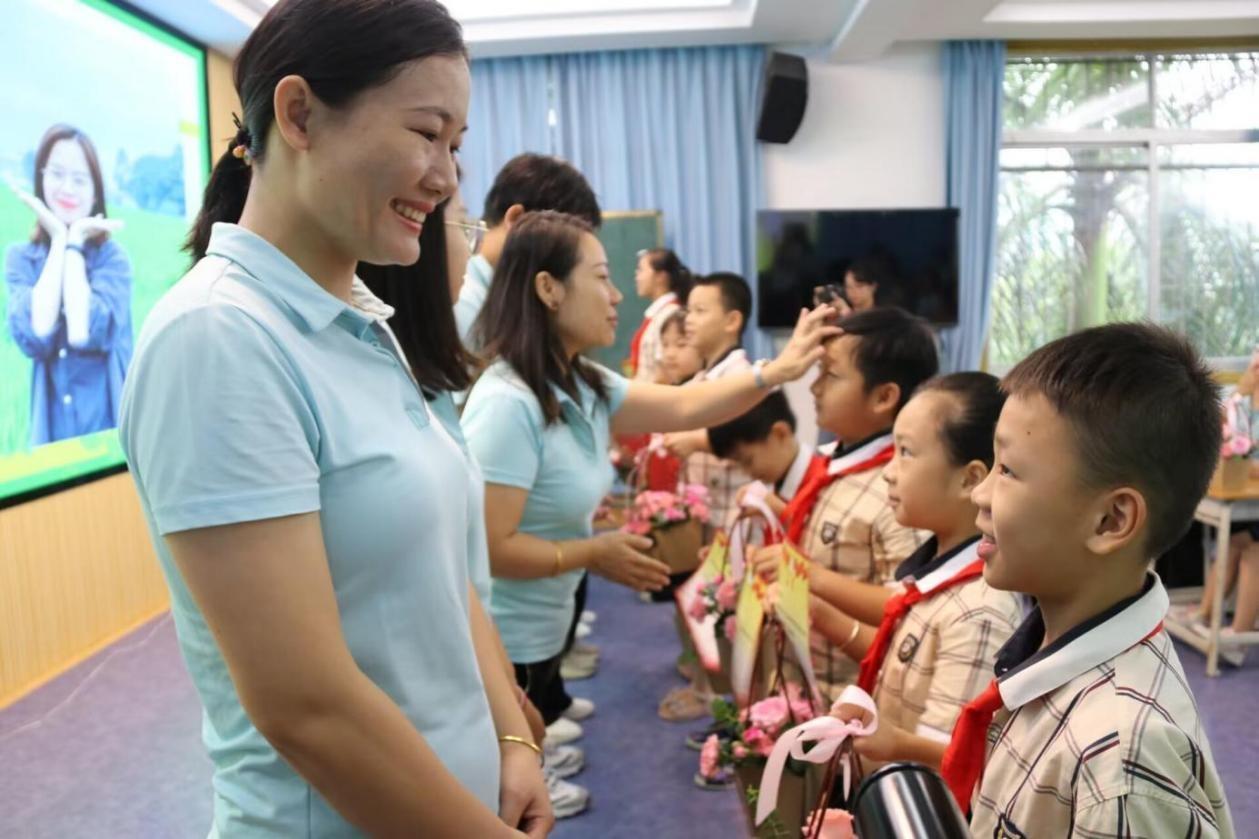 2023年教師節(jié)前,廣西南寧一所學(xué)校,學(xué)生向老師獻(xiàn)上鮮花、賀卡。