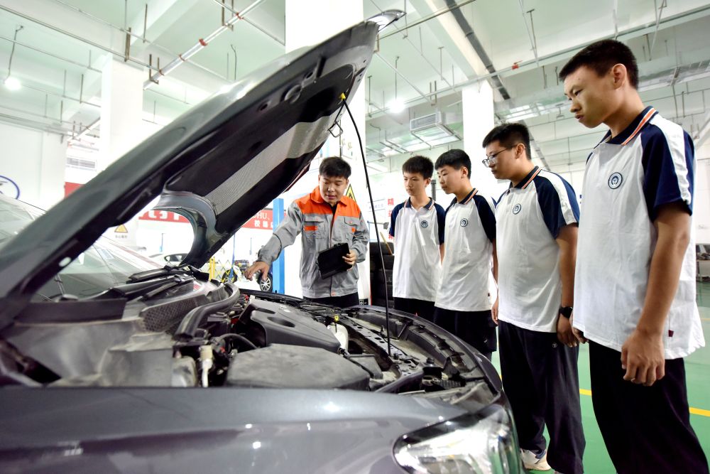 2024年6月7日,河北省邢臺(tái)市威縣職業(yè)技術(shù)教育中心教師在指導(dǎo)學(xué)生學(xué)習(xí)汽車維修技術(shù)。新華社記者 王曉 攝