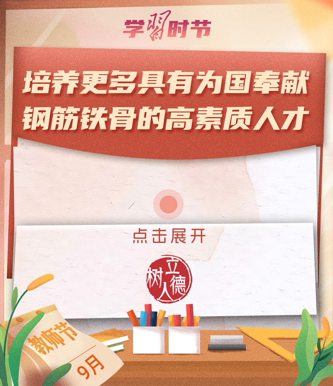 “百年大計(jì),教育為本。教育大計(jì),教師為本?!秉h的十八大以來(lái),習(xí)近平總書(shū)記多次以書(shū)信形式向教師群體和教育工作者表達(dá)囑托與期望,諄諄話語(yǔ),催人奮進(jìn)。在第四十個(gè)教師節(jié)到來(lái)之際,讓我們一起重溫總書(shū)記的諄諄寄語(yǔ)!