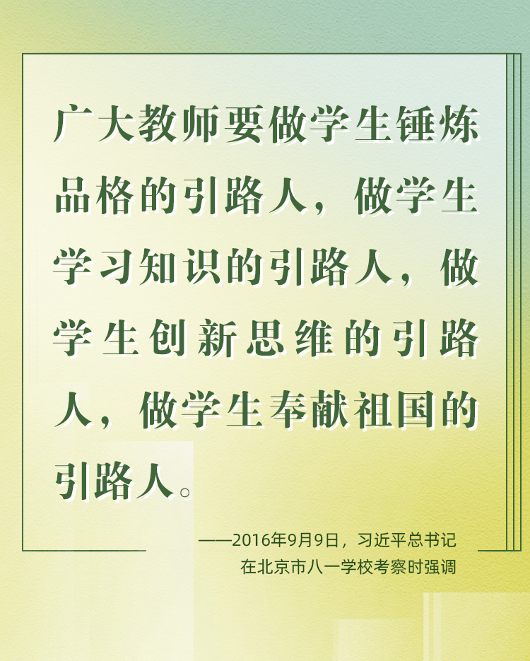 他們帶領(lǐng)學(xué)生前行,更新舊知、開掘新知、探索未知;他們肩負(fù)光榮使命,為黨育人、為國育才、為民育未來。守教育報國初心、擔(dān)立德樹人使命、圓民族復(fù)興之夢,建設(shè)社會主義現(xiàn)代化強(qiáng)國之路上,教育家精神自當(dāng)念茲在茲、代代傳承、光芒永綻。