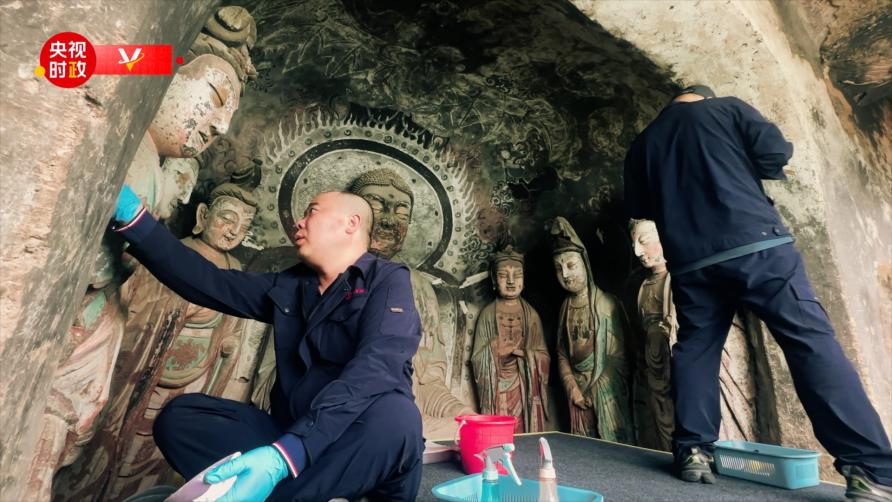 麥積山林區(qū)多雨潮濕,塑像和壁畫(huà)容易出現(xiàn)骨架糟朽、前傾、空鼓、開(kāi)裂、脫色等病害。近年來(lái),當(dāng)?shù)匚奈锉Wo(hù)單位通過(guò)不斷加固、修復(fù)、滲水治理、生物防治和數(shù)字化采集等科學(xué)措施,認(rèn)真做好石窟文物保護(hù)、修復(fù)、傳承、利用工作,積極推進(jìn)中國(guó)傳統(tǒng)雕塑繼承與創(chuàng)新。