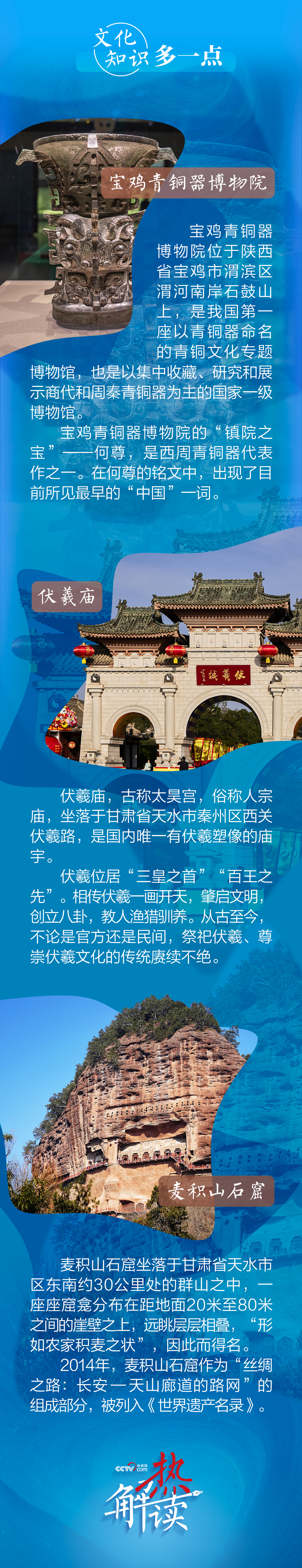 熱解讀9月10日下午至11日上午,習近平總書記先后來到陜西省寶雞市和甘肅省天水市考察調(diào)研。此次陜甘行中,總書記專門考察了三處文化地標。