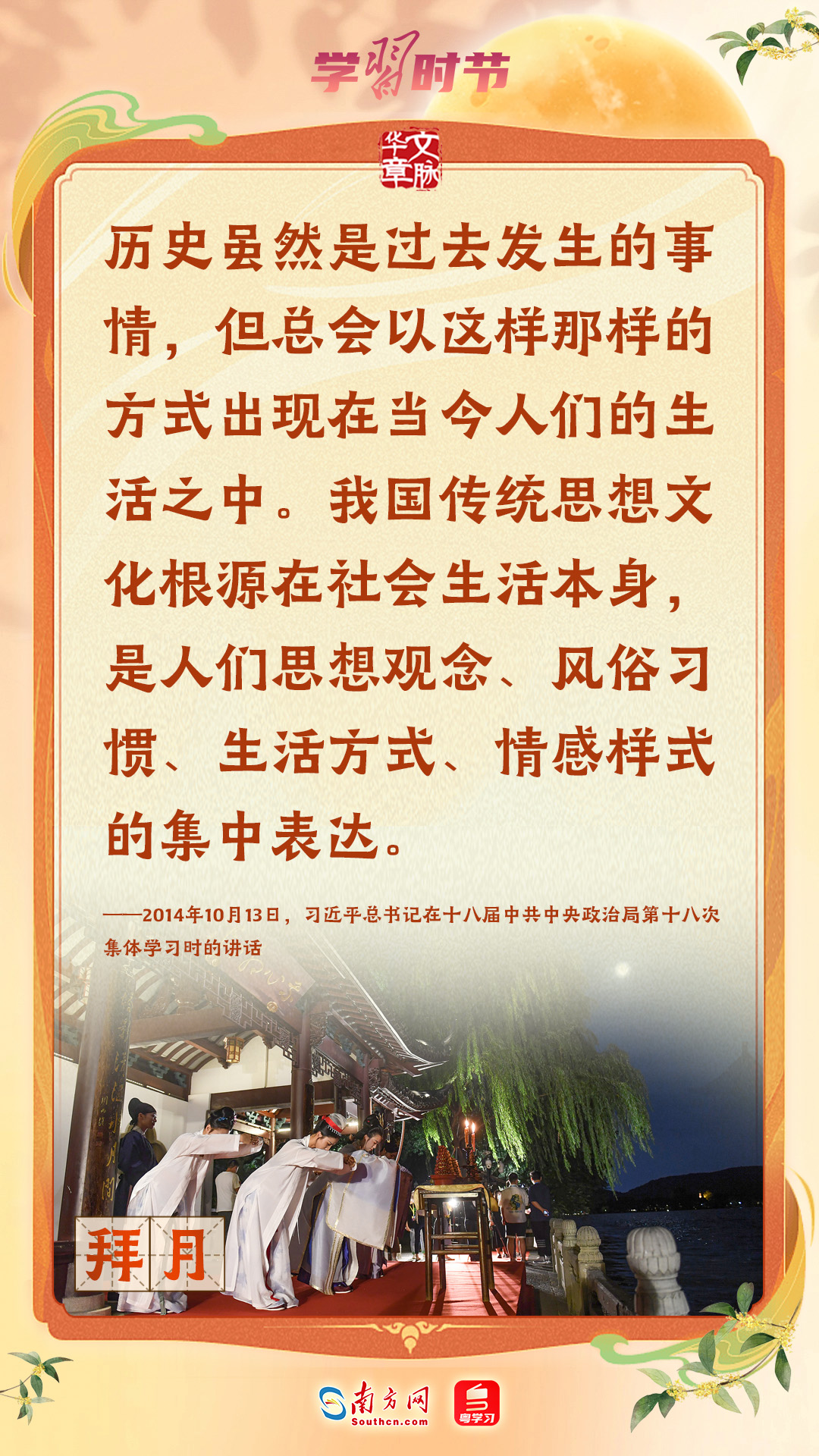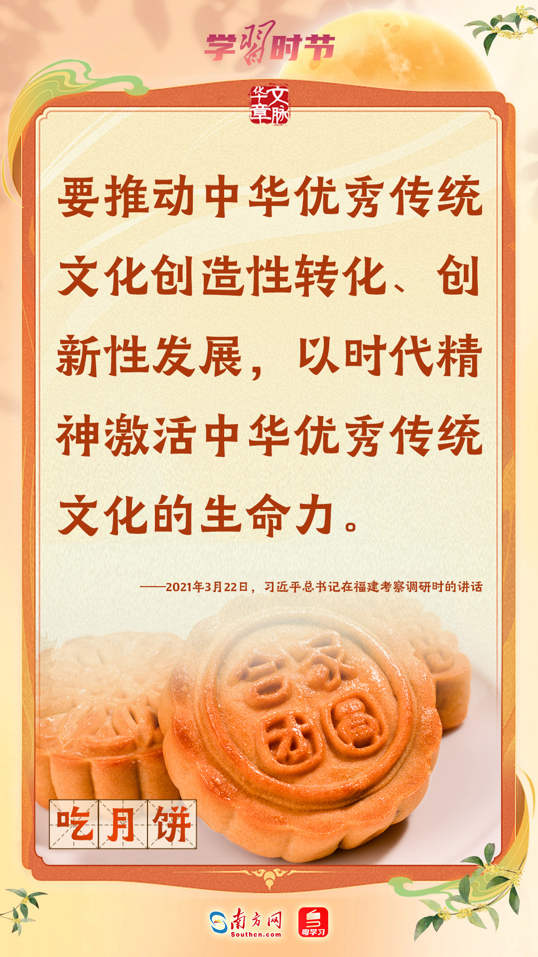 品月餅、賞月拜月、看花燈、飲桂花酒……作為我國重要的傳統(tǒng)節(jié)日,中秋節(jié)蘊含著中華優(yōu)秀傳統(tǒng)文化的精髓。習近平總書記一直以來高度重視傳統(tǒng)節(jié)日和傳統(tǒng)文化,曾多次強調要發(fā)揮其寶貴價值和獨特作用。
