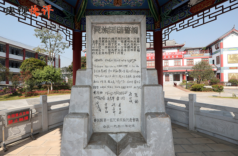 普洱民族團(tuán)結(jié)誓詞碑被譽(yù)為“新中國民族團(tuán)結(jié)第一碑”。1950年,云南普洱專區(qū)各族代表應(yīng)邀到北京參加新中國成立一周年慶?;顒?dòng),受到毛澤東等黨和國家領(lǐng)導(dǎo)人親切接見。1951年元旦,普洱專區(qū)各族群眾舉行盟誓大會,以少數(shù)民族的風(fēng)俗習(xí)慣立下誓詞碑。盟誓立碑后,各民族兄弟姐妹用實(shí)際行動(dòng)踐行“一心一德跟黨走”的錚錚誓言,推動(dòng)邊疆地區(qū)經(jīng)濟(jì)社會發(fā)展取得了歷史性成就,書寫了民族團(tuán)結(jié)進(jìn)步生動(dòng)篇章。