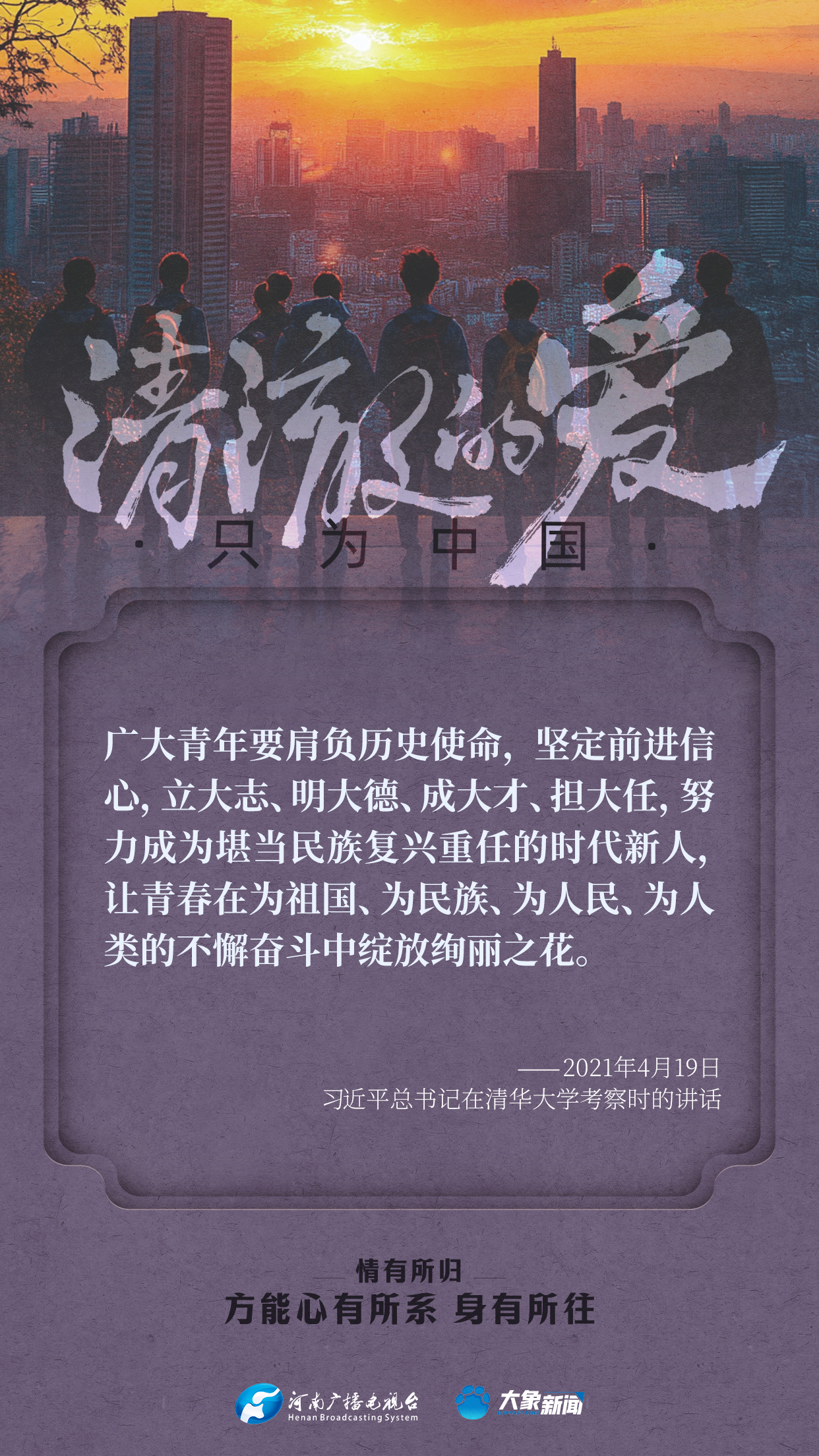 習(xí)近平總書(shū)記對(duì)廣大青年寄予厚望。黨的十八大以來(lái),他多次來(lái)到青年中間,同大家談人生、話理想,鼓勵(lì)青年人心系祖國(guó),志存高遠(yuǎn),腳踏實(shí)地,在奮斗中創(chuàng)造精彩人生,為祖國(guó)和人民貢獻(xiàn)青春和力量。