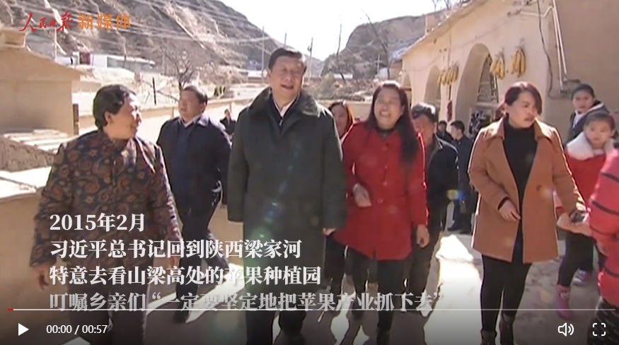 2015年2月,總書記回到陜西梁家河,特意去看山梁高處的蘋果種植園,叮囑鄉(xiāng)親們,“一定要堅(jiān)定地把蘋果產(chǎn)業(yè)抓下去?!贝藭r(shí),聲勢(shì)浩大的脫貧攻堅(jiān)正如火如荼。