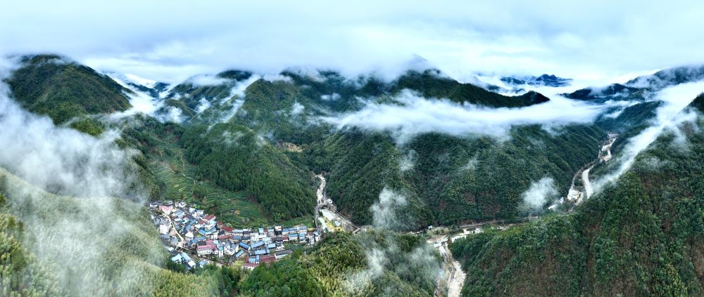 2024年1月30日,武夷山國家公園桐木村雨后云霧繚繞(無人機全景照片)。新華社記者 姜克紅 攝