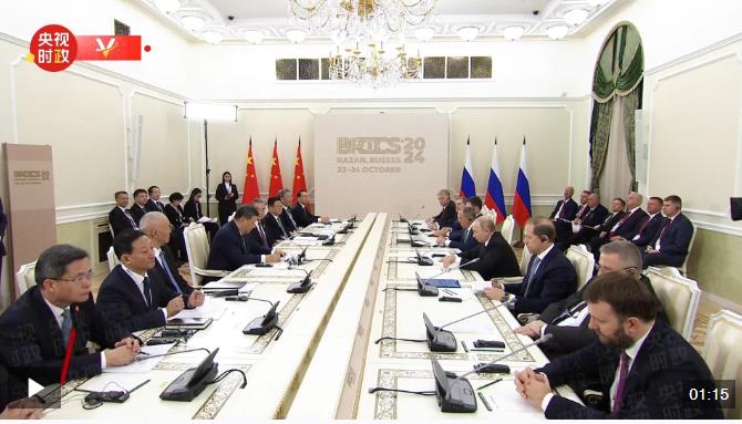 當?shù)貢r間10月22日下午,國家主席習近平在喀山克里姆林宮同俄羅斯總統(tǒng)普京舉行會晤。