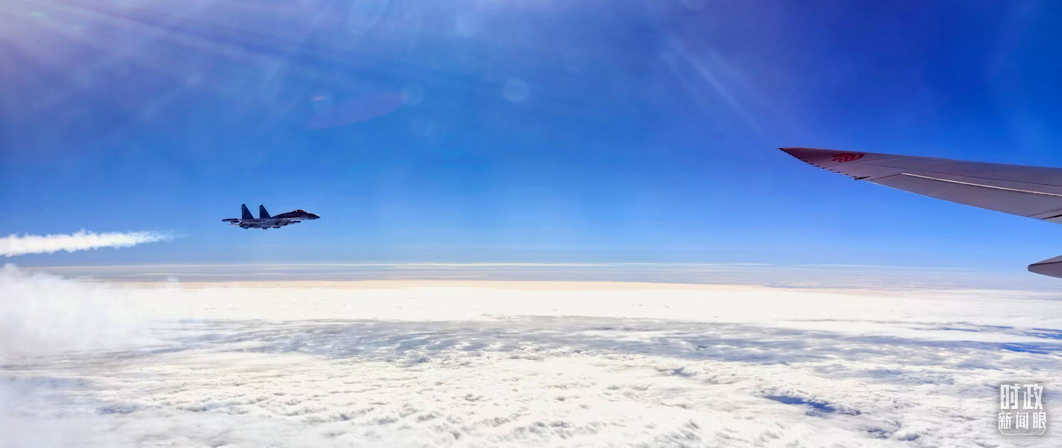 習(xí)主席乘坐的專機進入俄羅斯領(lǐng)空時,俄空軍戰(zhàn)機升空護航。(總臺央視記者李錚拍攝)