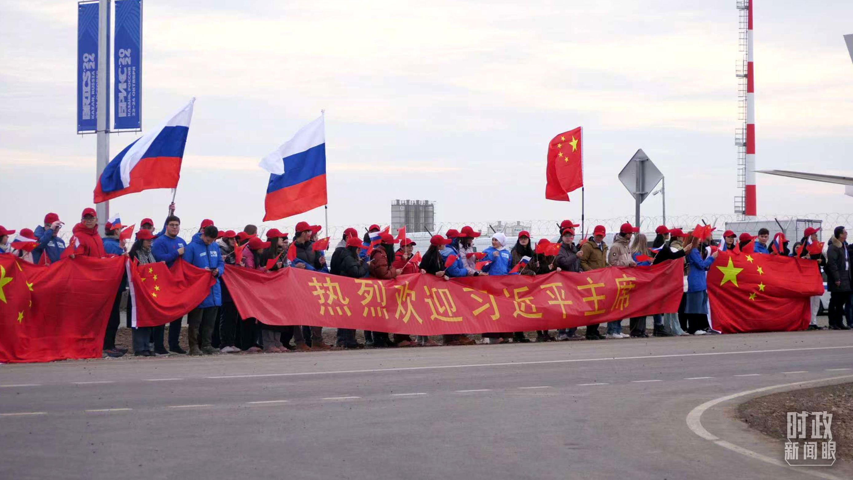俄羅斯喀山各界人士揮舞中俄兩國國旗,歡迎習(xí)主席到訪。(總臺記者蔣泓橋拍攝)