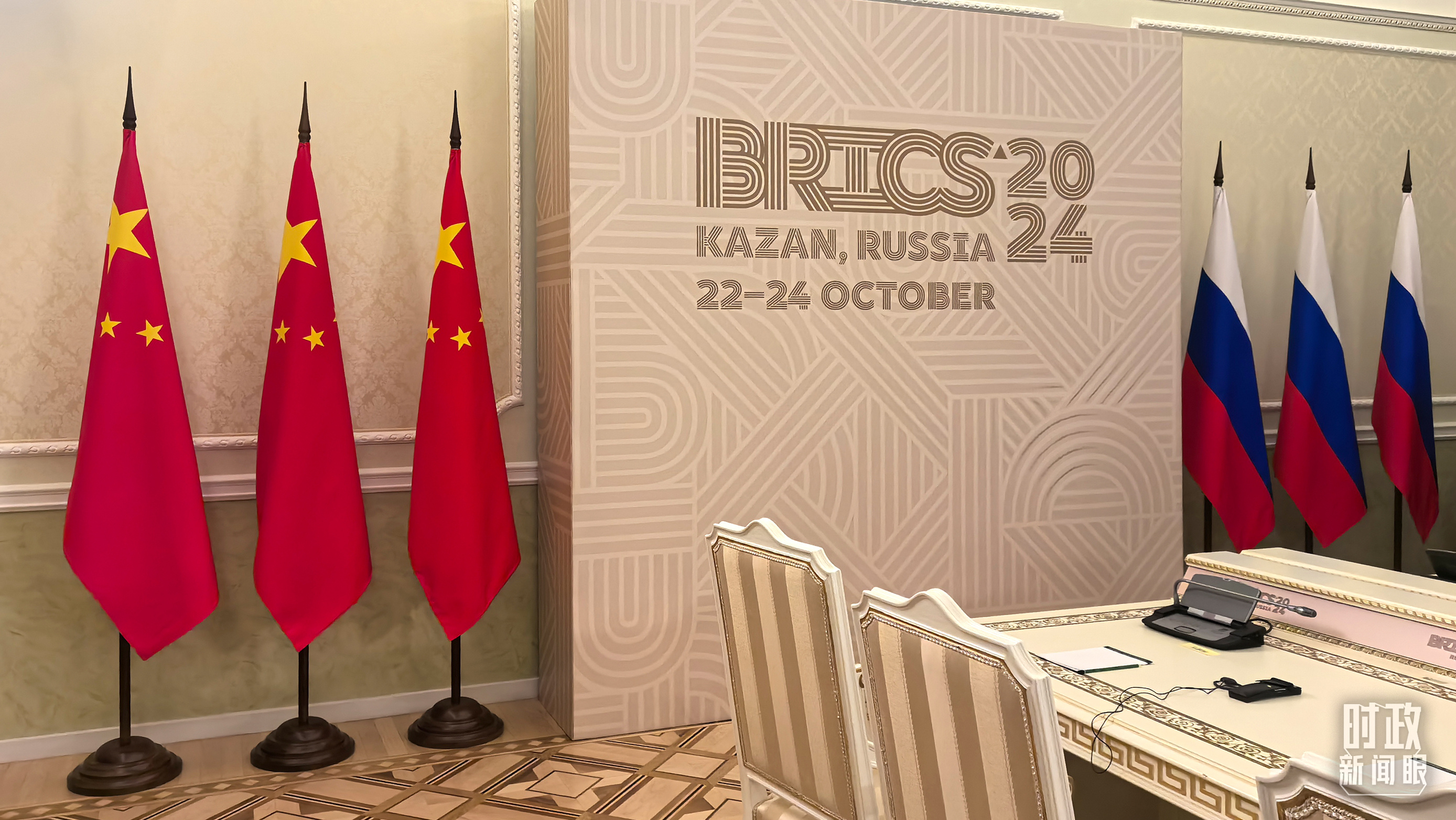 中俄兩國元首喀山會晤開始前的現(xiàn)場。(總臺央視記者程鋮拍攝)
