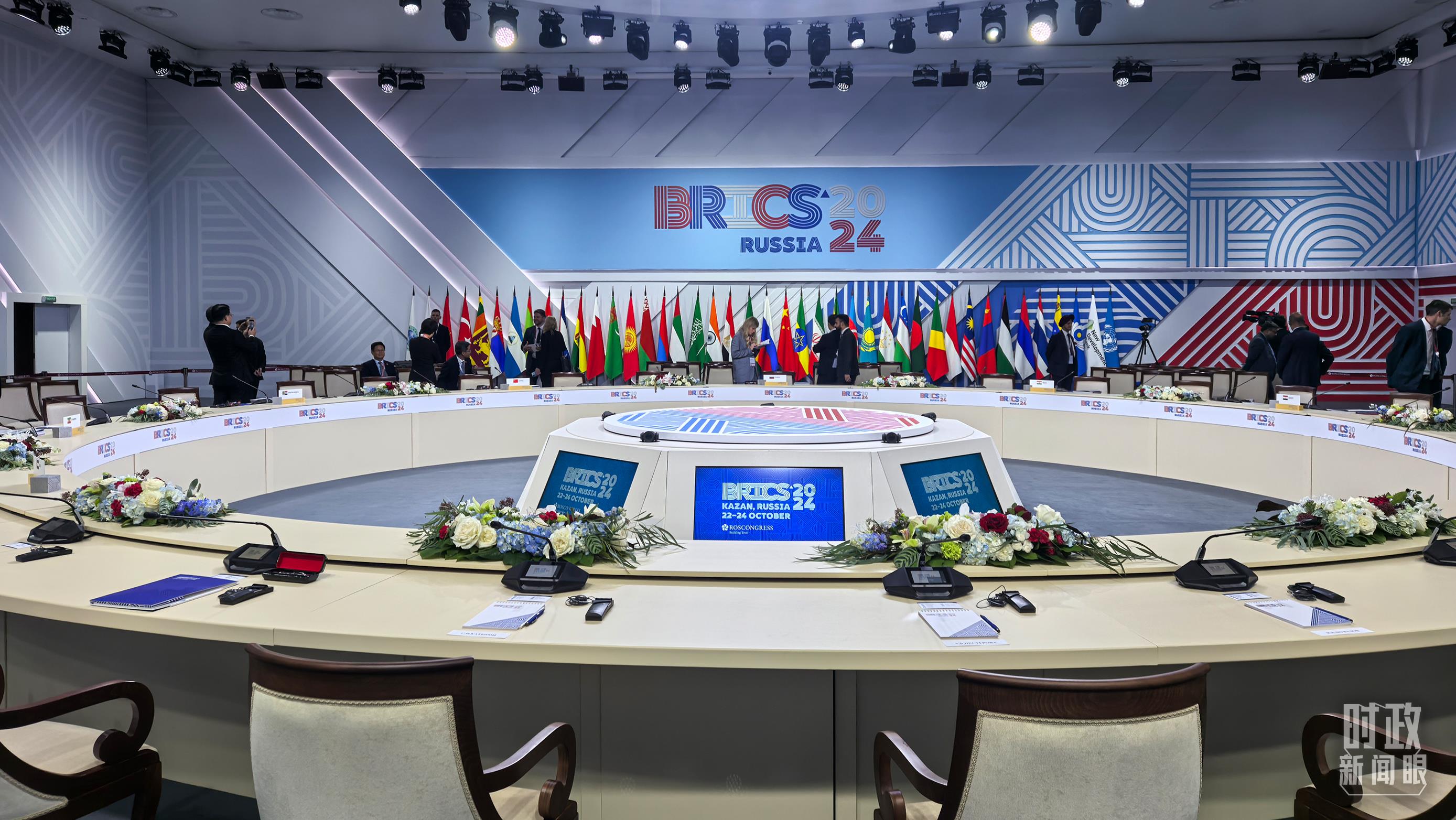 金磚國家領(lǐng)導(dǎo)人大范圍會議開始前。(總臺央視記者程鋮拍攝)