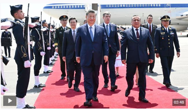 習近平發(fā)表機場書面講話,向秘魯政府和秘魯人民致以誠摯問候和良好祝愿。