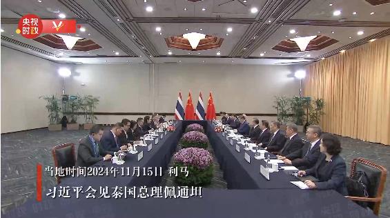 當(dāng)?shù)貢r(shí)間11月15日,國(guó)家主席習(xí)近平在利馬出席亞太經(jīng)合組織領(lǐng)導(dǎo)人非正式會(huì)議期間會(huì)見(jiàn)泰國(guó)總理佩通坦。