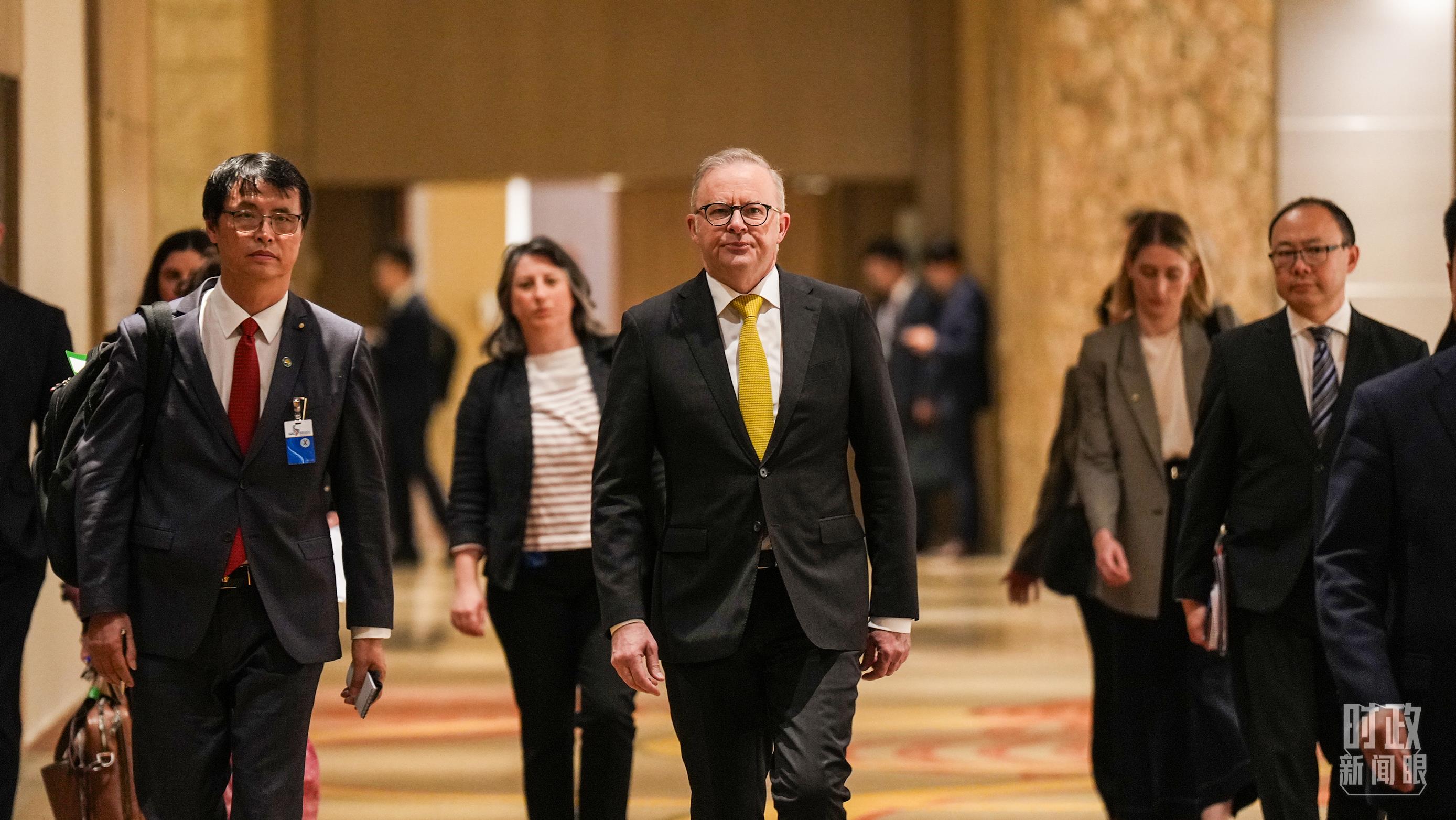 澳大利亞總理阿爾巴尼斯抵達(dá)會見現(xiàn)場。(總臺記者李晉拍攝)