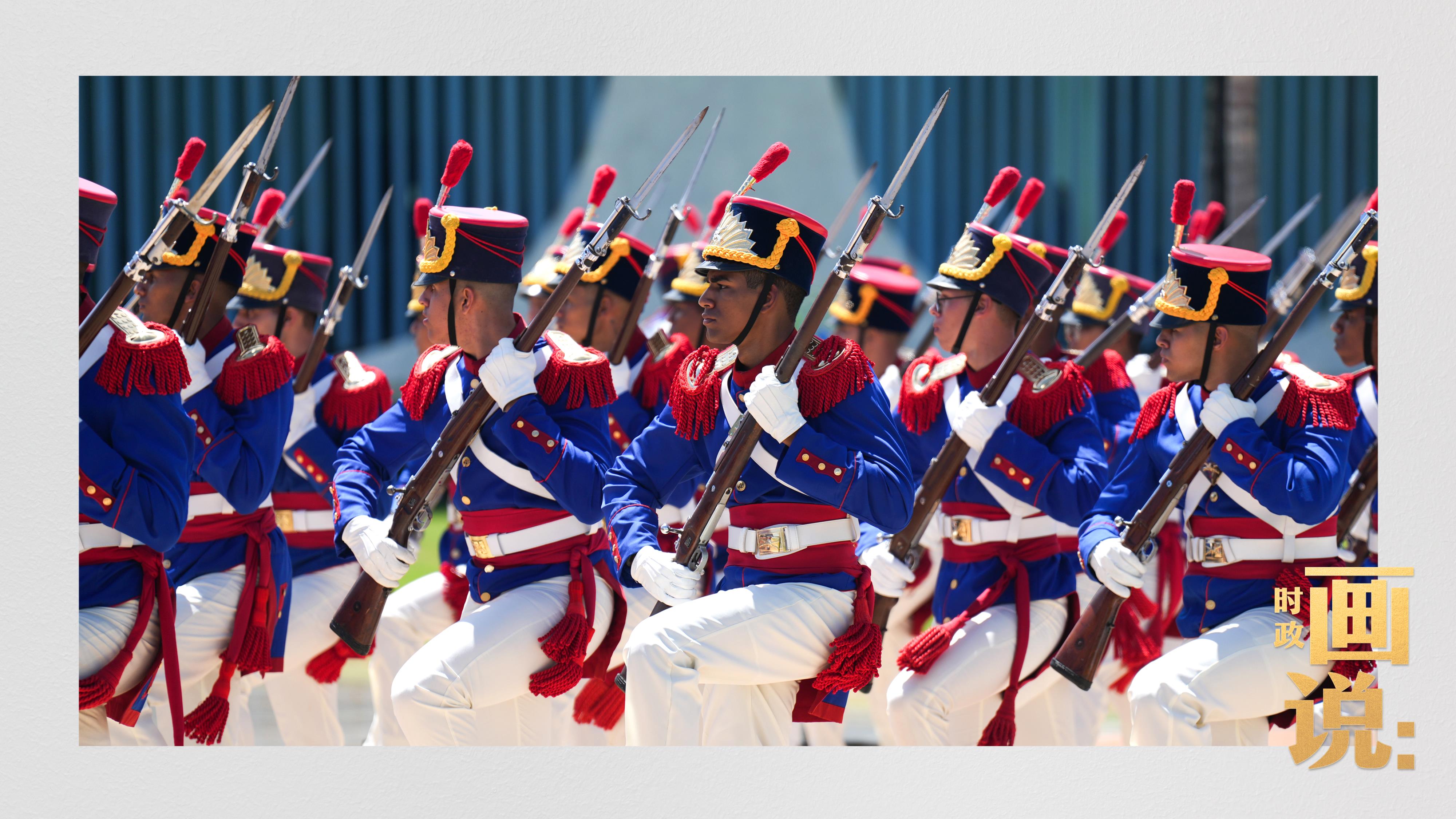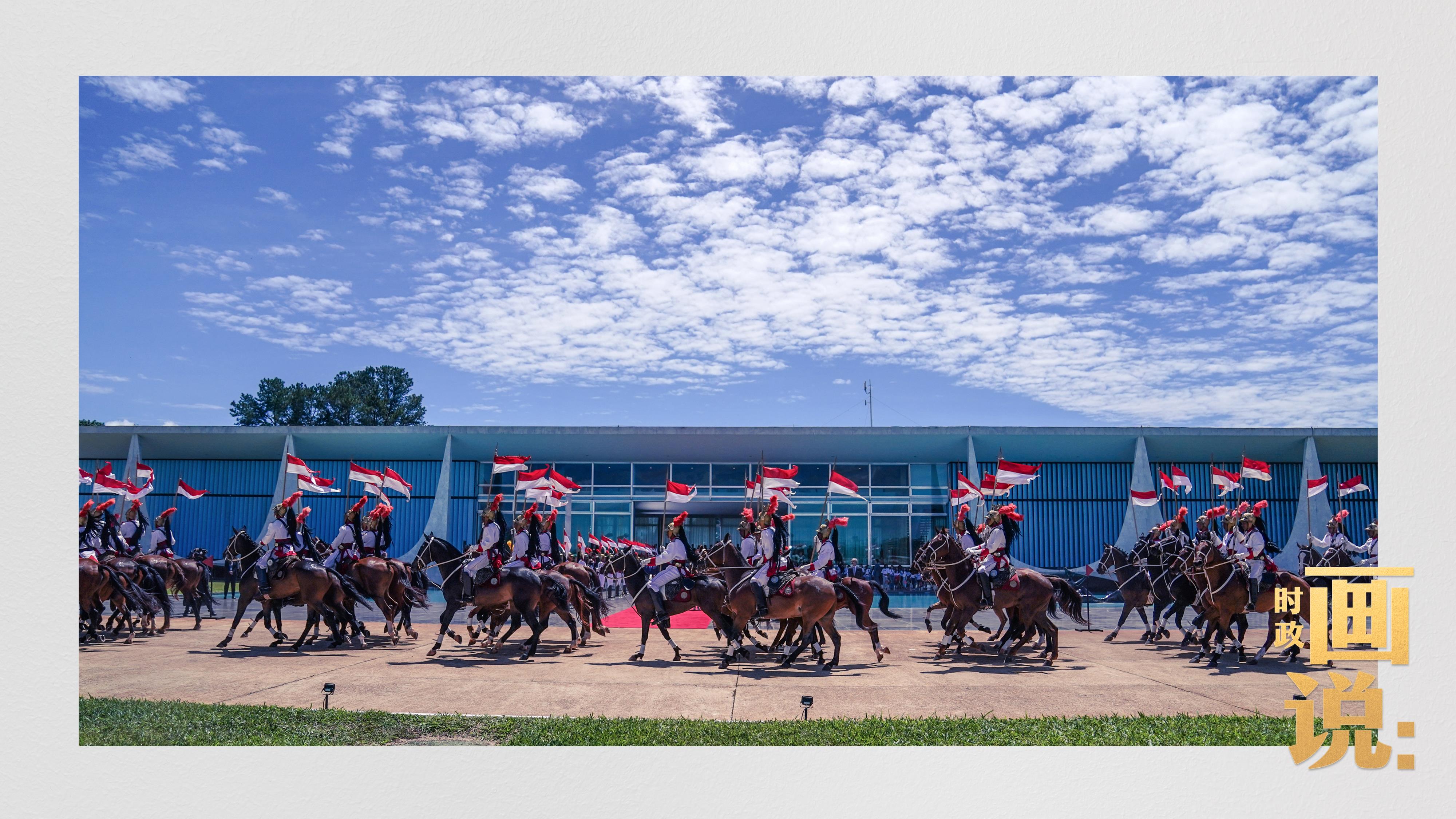 騎兵護(hù)衛(wèi)習(xí)近平主席專車抵達(dá)儀式現(xiàn)場(chǎng),巴西藝術(shù)家用中文深情唱響中國(guó)經(jīng)典民歌《我的祖國(guó)》,現(xiàn)場(chǎng)氣氛隆重?zé)崃摇?/p>