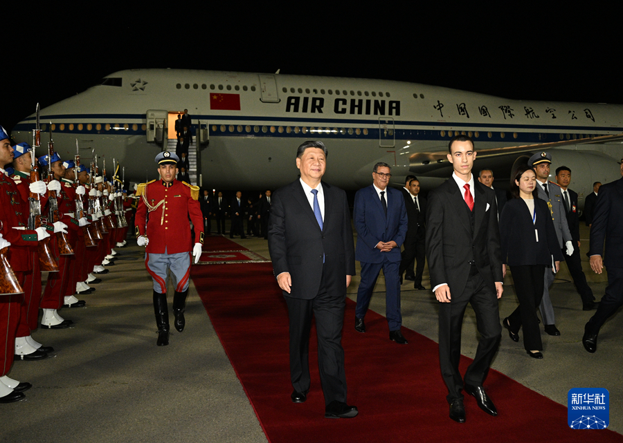 受摩洛哥國(guó)王穆罕默德六世指派,摩洛哥王儲(chǔ)哈桑、首相阿赫努什專程赴機(jī)場(chǎng)迎接習(xí)近平,并在機(jī)場(chǎng)舉行歡迎儀式。