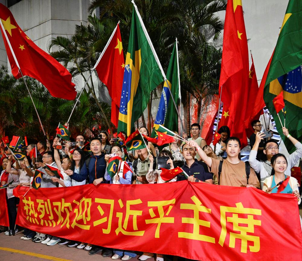 2024年11月,習(xí)近平主席在巴西里約熱內(nèi)盧出席二十國集團領(lǐng)導(dǎo)人第十九次峰會期間,里約熱內(nèi)盧街頭熱情的歡迎人群。