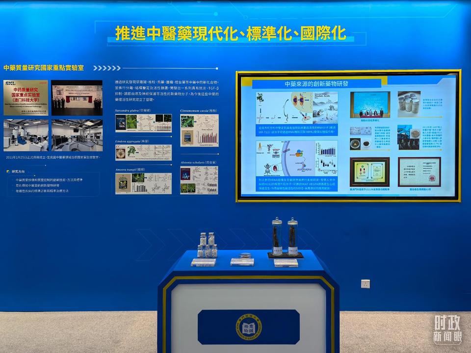 △澳門科技大學(xué)中藥質(zhì)量研究國家重點實驗室、月球與行星科學(xué)國家重點實驗室成果展示。(總臺央視記者陸泓宇拍攝)
