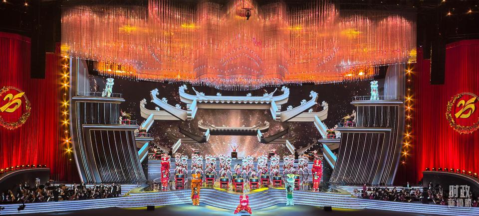 △慶祝澳門回歸祖國25周年文藝晚會現(xiàn)場燈光璀璨,歡樂喜慶。(總臺央視記者范學(xué)禹拍攝)