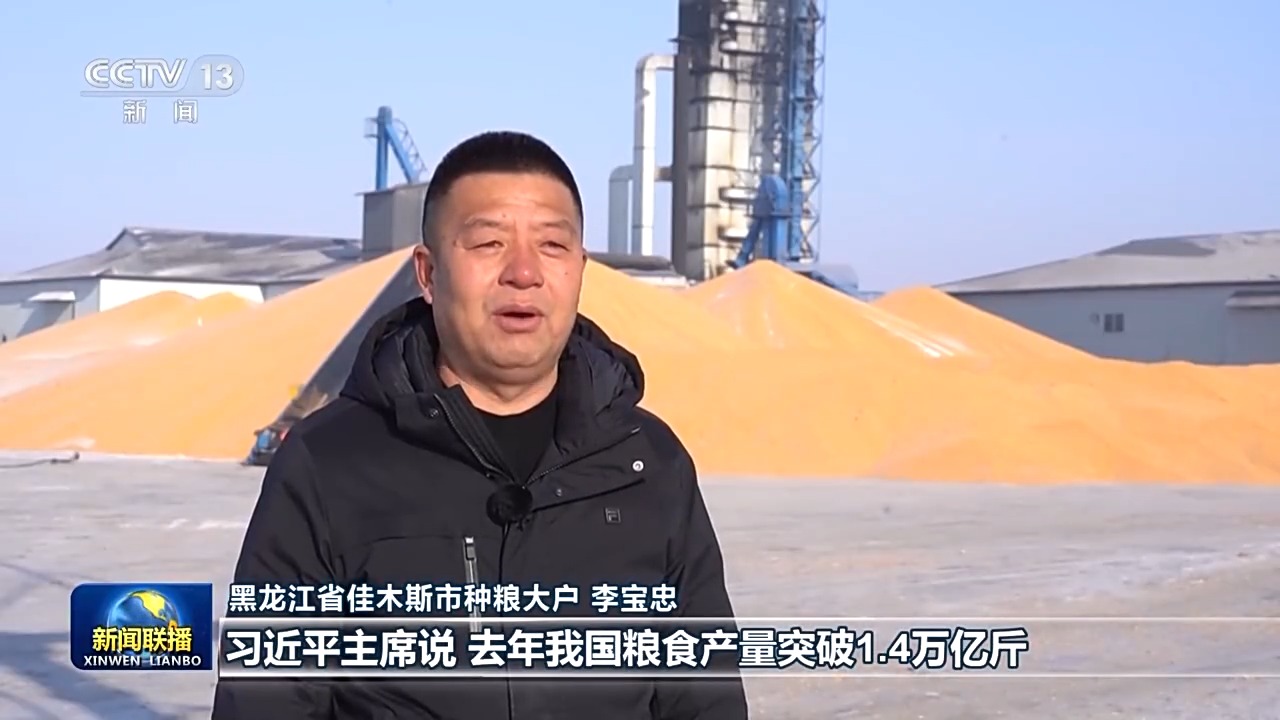黑龍江省佳木斯市種糧大戶 李寶忠:習(xí)近平主席說,去年我國糧食產(chǎn)量突破1.4萬億斤,中國碗裝了更多中國糧。聽到這話我心里特別自豪。今年春耕之前,我們要更新購置大型高端智能的玉米收割機(jī),我要和鄉(xiāng)親們一起加油干,在農(nóng)業(yè)現(xiàn)代化的道路上扎實(shí)走好每一步,用我們的雙手把中國飯碗端得更牢。