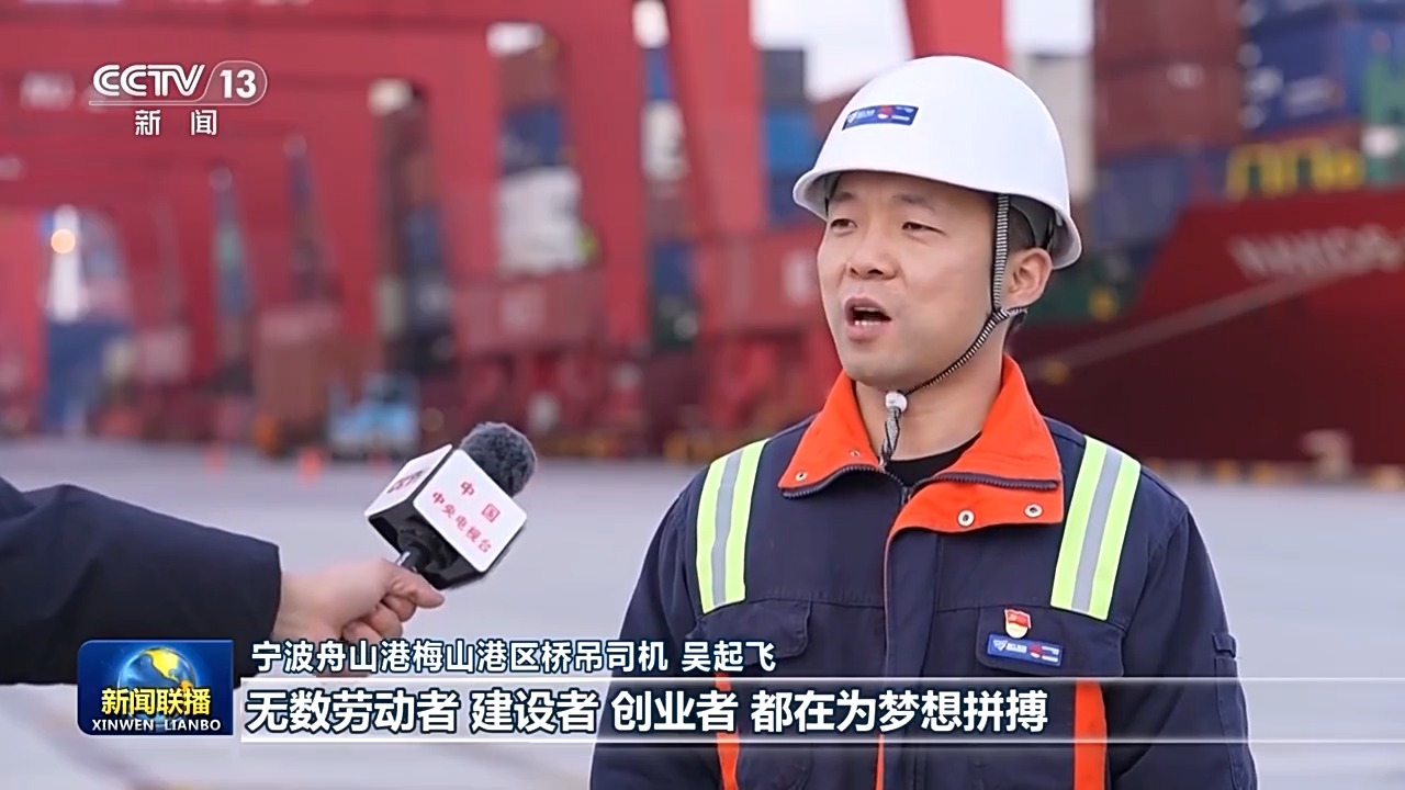 寧波舟山港梅山港區(qū)橋吊司機(jī) 吳起飛:習(xí)近平總書記在2025年新年賀詞里說,無數(shù)勞動(dòng)者、建設(shè)者、創(chuàng)業(yè)者都在為夢(mèng)想拼搏。2024年,我們實(shí)現(xiàn)了寧波舟山港梅山港區(qū)年集裝箱吞吐量超一千萬的目標(biāo)。2025年,和團(tuán)隊(duì)的小伙伴們一起,把智慧港口建設(shè)好,為海港的發(fā)展貢獻(xiàn)力量。