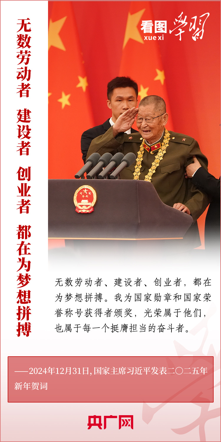 “夢(mèng)雖遙,追則能達(dá);愿雖艱,持則可圓?!毙履昵跋?,習(xí)近平主席發(fā)表二〇二五年新年賀詞。在溫暖有力的講述中,習(xí)主席深情回望過(guò)去一年中國(guó)不平凡的奮斗歷程、精彩瞬間,感慨大家一道經(jīng)歷的風(fēng)雨彩虹、難忘時(shí)刻,贊美無(wú)數(shù)為夢(mèng)想拼搏的勞動(dòng)者、建設(shè)者、創(chuàng)業(yè)者。習(xí)主席說(shuō),中國(guó)式現(xiàn)代化的新征程上,每一個(gè)人都是主角,每一份付出都彌足珍貴,每一束光芒都熠熠生輝。讓我們充滿信心,在新的一年接續(xù)奮斗!
