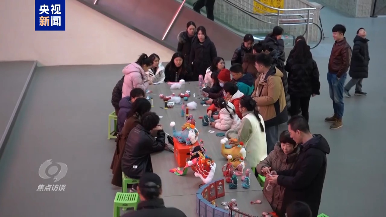 專家在進行專業(yè)的修復(fù),觀眾的新春體驗活動也已經(jīng)開始。