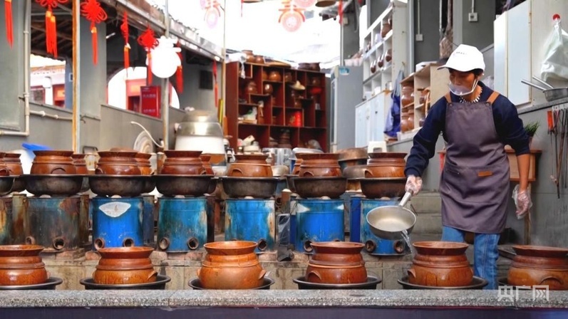 制作盬子雞的盬子,來自當?shù)厥〖壏俏镔|(zhì)文化遺產(chǎn)代表性傳承人母先才的陶藝館。2014年,在政府的幫扶下,母先才依托傳統(tǒng)技藝開設(shè)了陶藝館。現(xiàn)在,他不僅把原來的土窯改成了更加環(huán)保的電窯,還把工坊變?yōu)榧铺?、研學(xué)、餐飲為一體的陶藝館,受到游客歡迎。