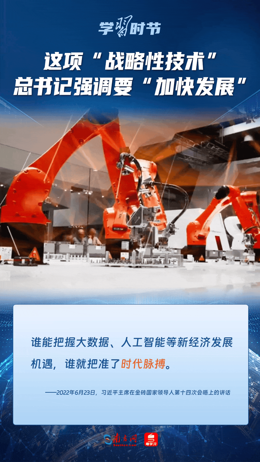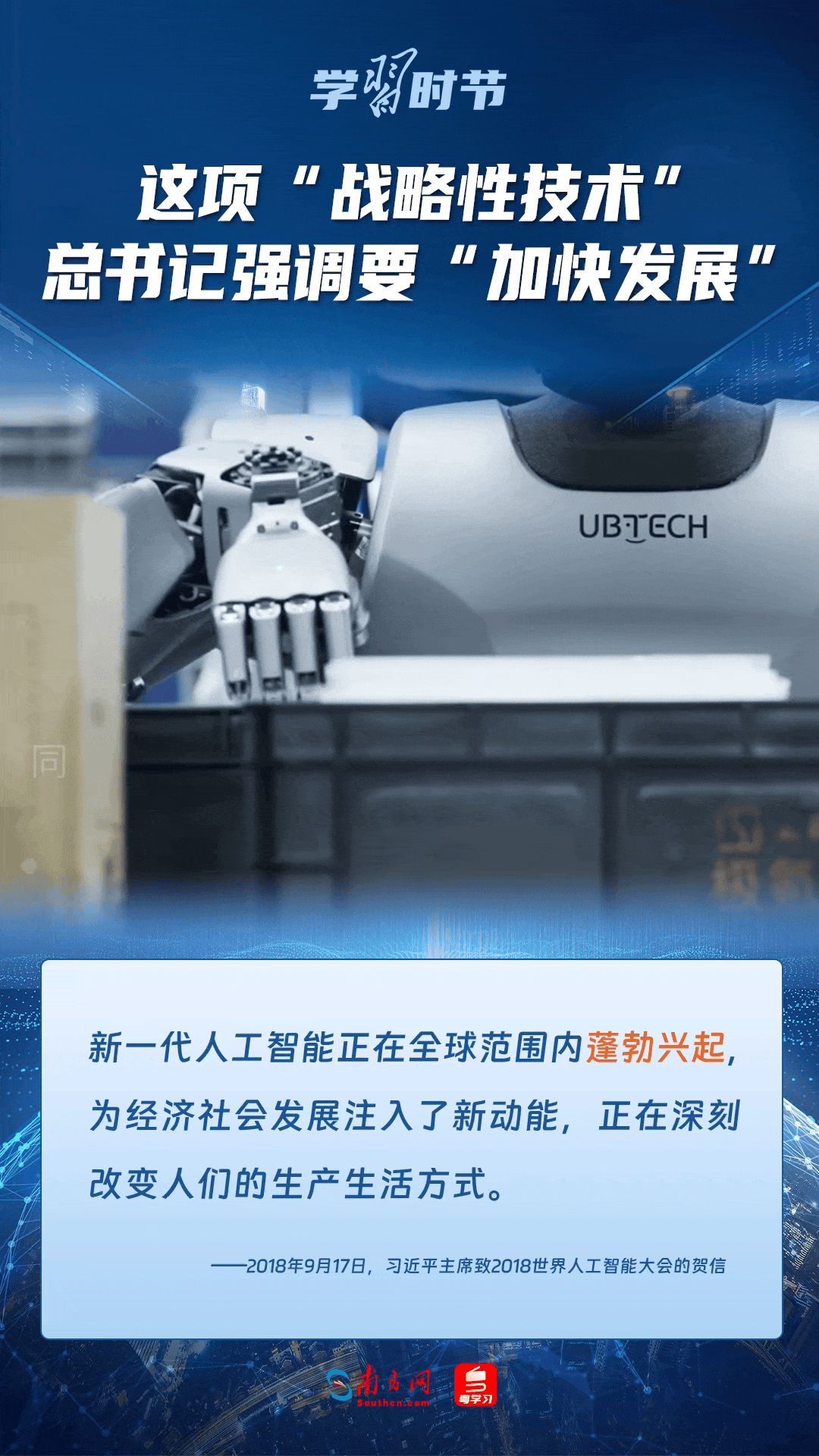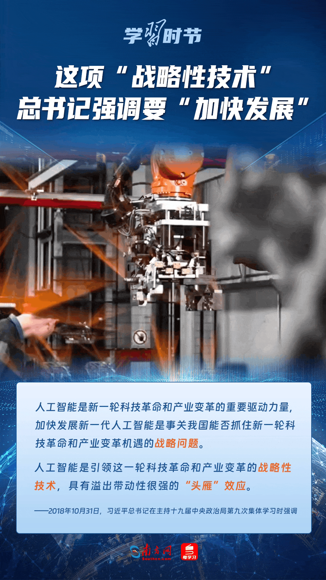 人工智能是引領(lǐng)科技革命和產(chǎn)業(yè)變革的戰(zhàn)略性技術(shù)。黨的十八大以來,習(xí)近平總書記把創(chuàng)新擺在國(guó)家發(fā)展全局的核心位置,高度重視人工智能發(fā)展,多次談及這項(xiàng)“戰(zhàn)略性技術(shù)”,強(qiáng)調(diào)要“加快發(fā)展”,為人工智能賦能千行百業(yè)指明方向。讓我們一起來學(xué)習(xí)總書記關(guān)于人工智能的重要論述!