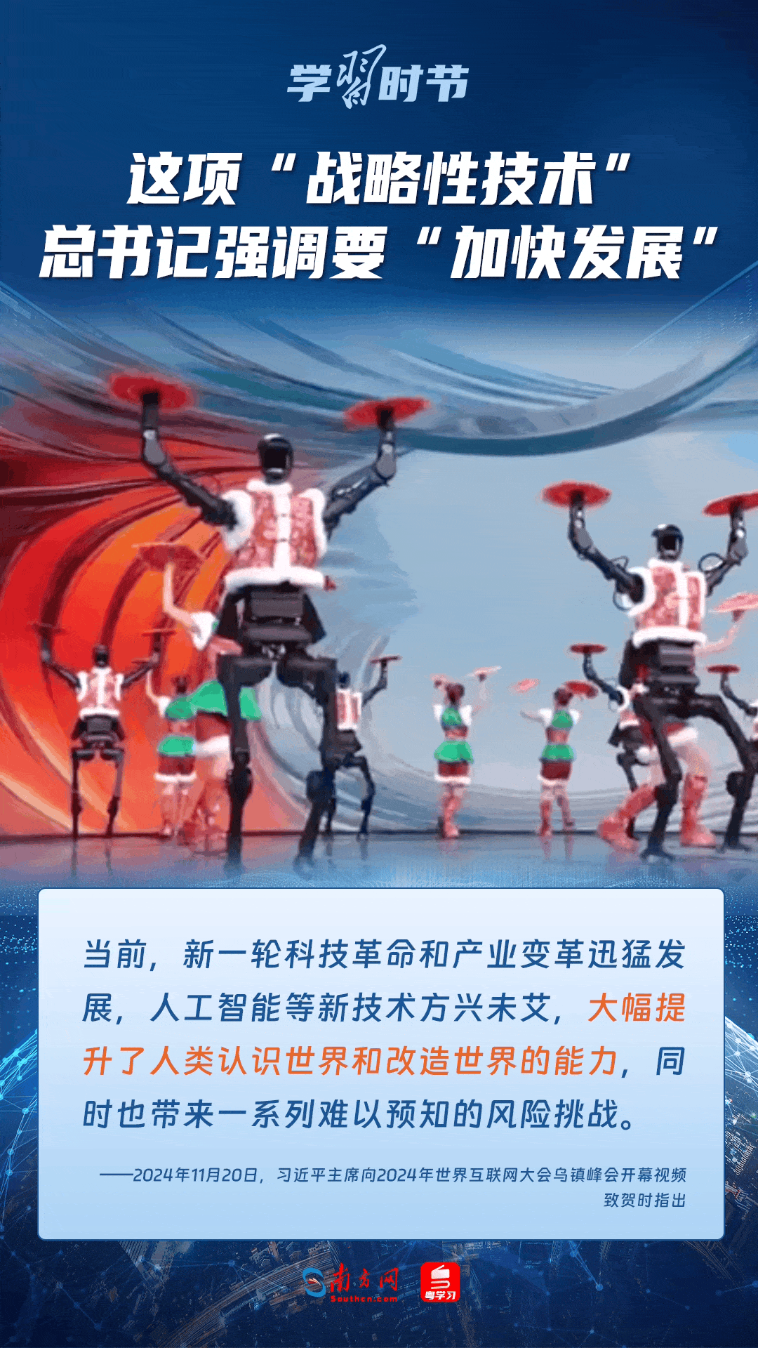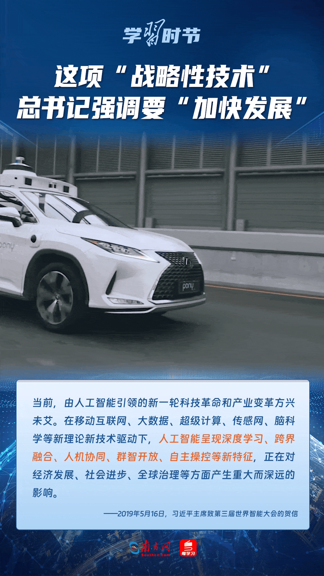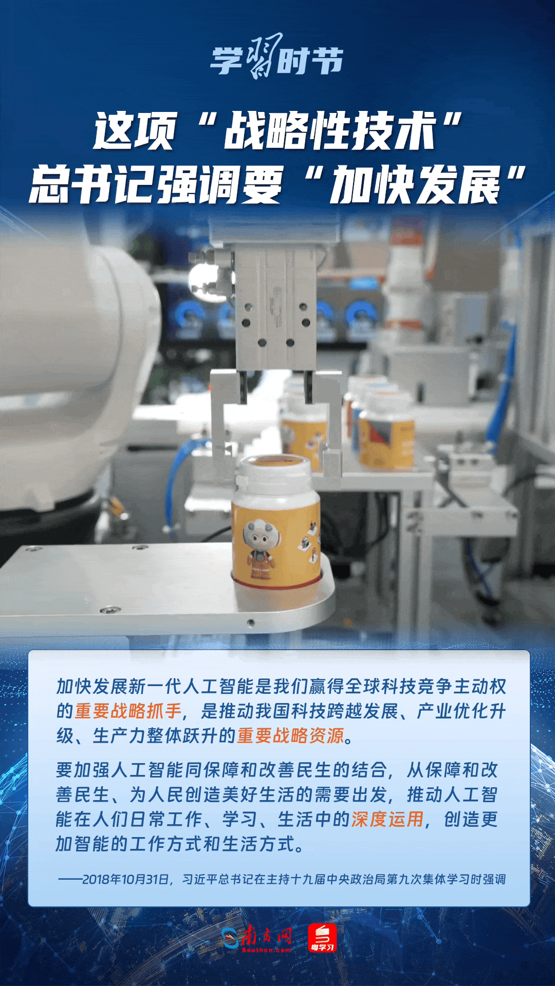 人工智能是引領(lǐng)科技革命和產(chǎn)業(yè)變革的戰(zhàn)略性技術(shù)。黨的十八大以來,習(xí)近平總書記把創(chuàng)新擺在國(guó)家發(fā)展全局的核心位置,高度重視人工智能發(fā)展,多次談及這項(xiàng)“戰(zhàn)略性技術(shù)”,強(qiáng)調(diào)要“加快發(fā)展”,為人工智能賦能千行百業(yè)指明方向。讓我們一起來學(xué)習(xí)總書記關(guān)于人工智能的重要論述!