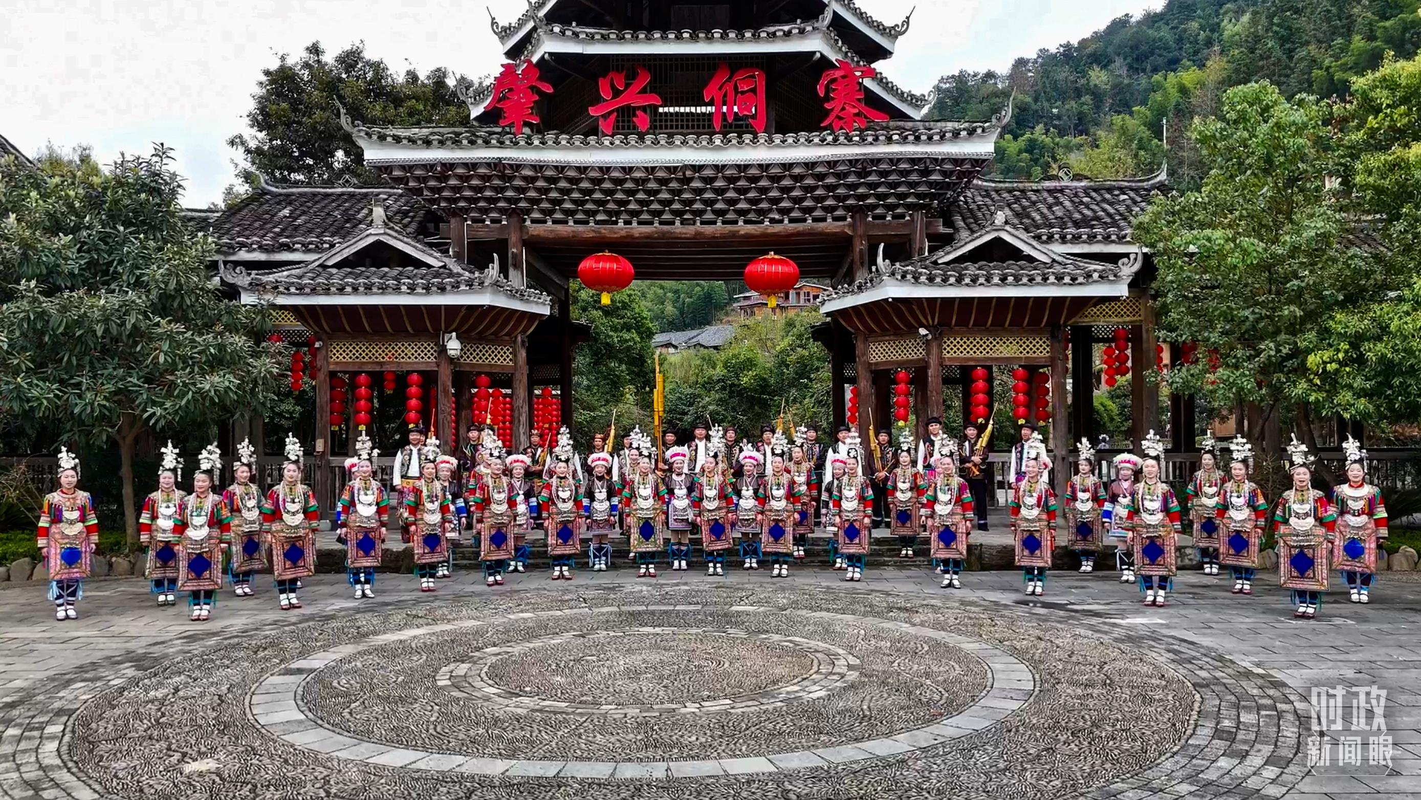 寨門處,鄉(xiāng)親們身著傳統(tǒng)服飾,唱起侗族大歌,歡迎遠(yuǎn)方的來客。(總臺央視記者范凱拍攝)