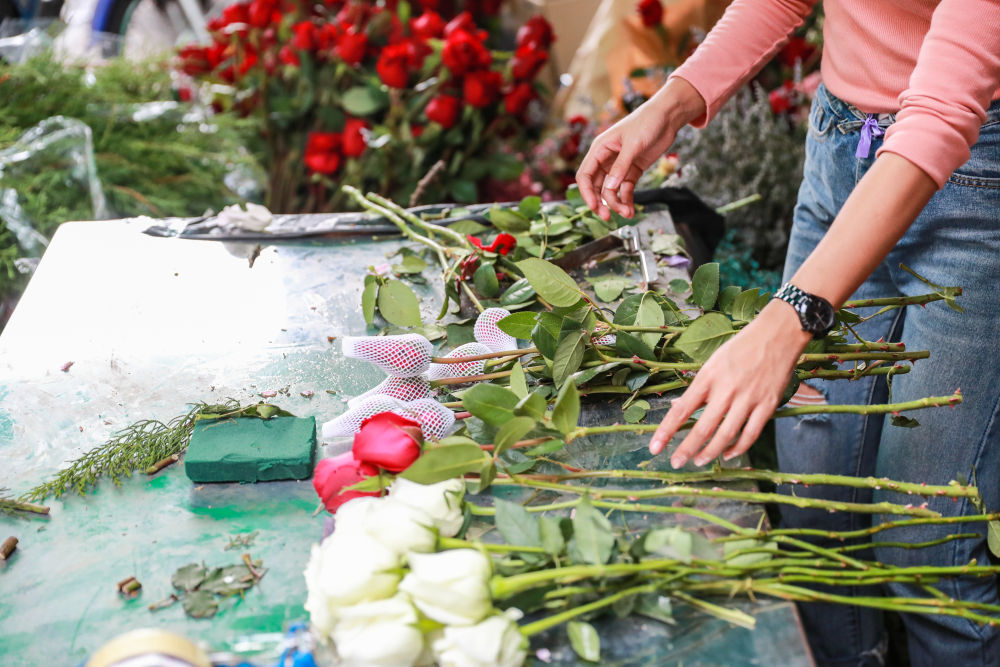 2019年2月14日,在泰國曼谷帕空鮮花市場的一家花店,工作人員將從云南進(jìn)口的鮮花制作成花束和花盒。東南亞是云南花卉的傳統(tǒng)市場,在“一帶一路”倡議推動下,中國與東南亞國家相互開放的產(chǎn)業(yè)合作,為雙方商貿(mào)活動注入新動力。隨著昆曼國際大通道打通,經(jīng)過采摘、分級、修枝、包裝、拍賣等過程,云南鮮花只需近40小時(shí)的冷鏈運(yùn)輸便可抵達(dá)曼谷。