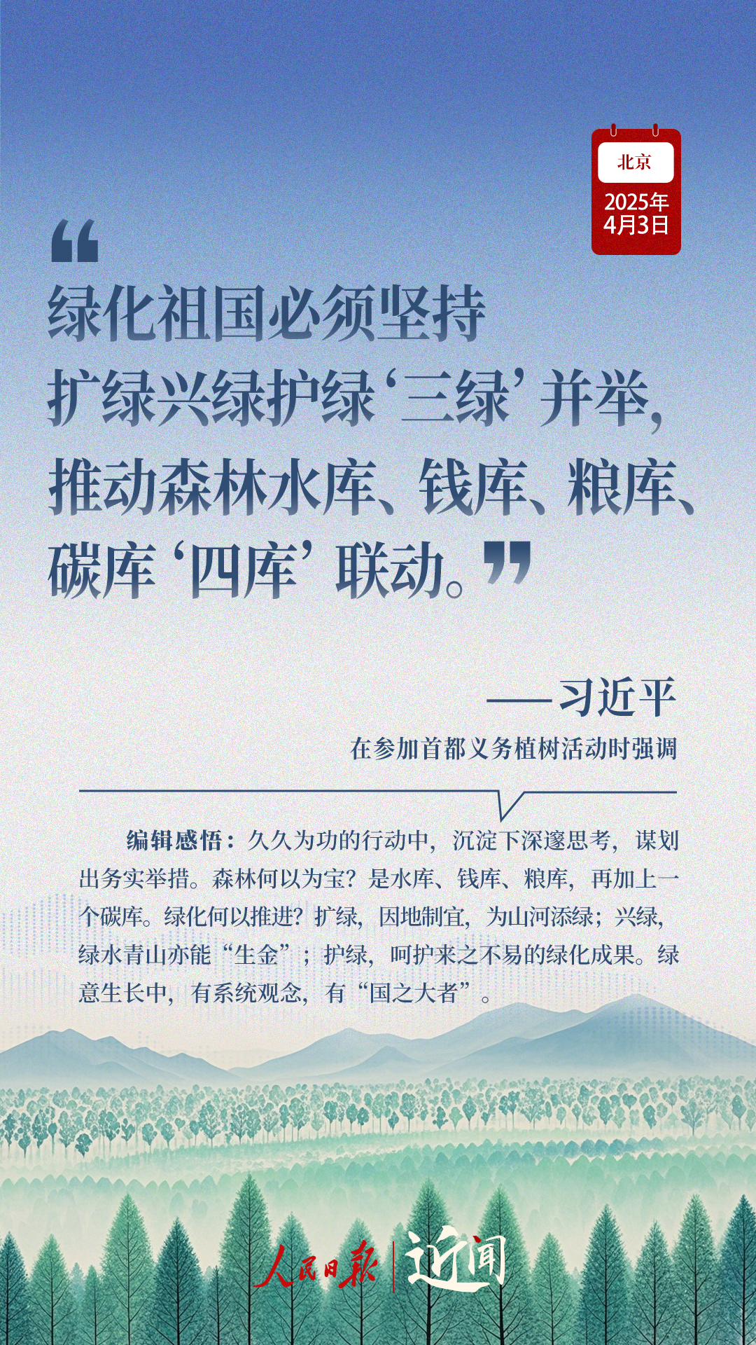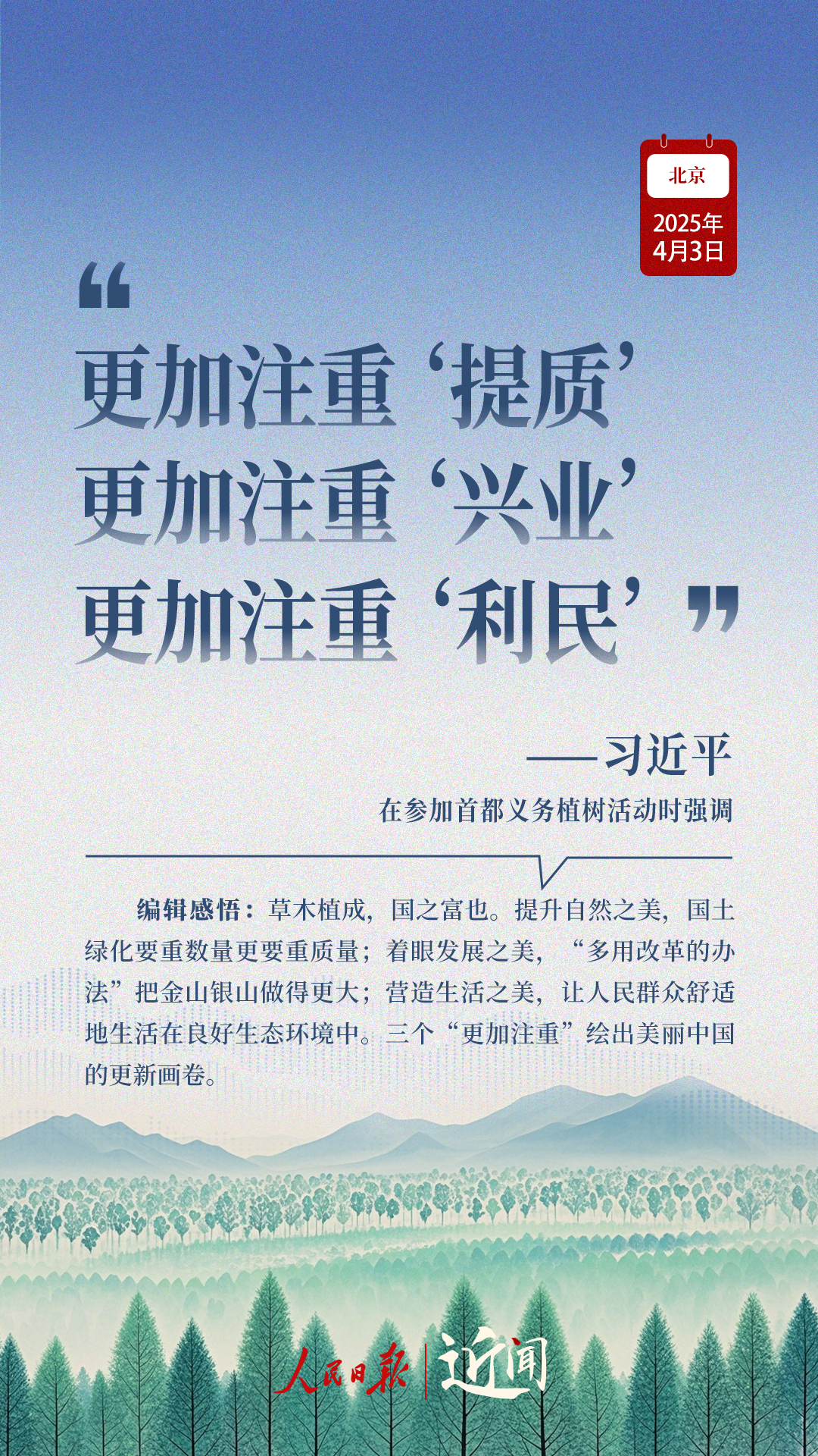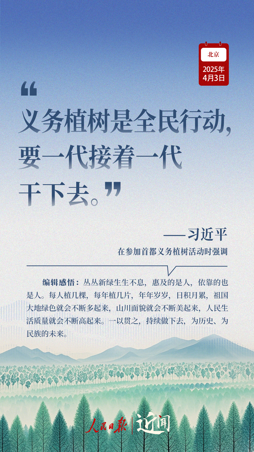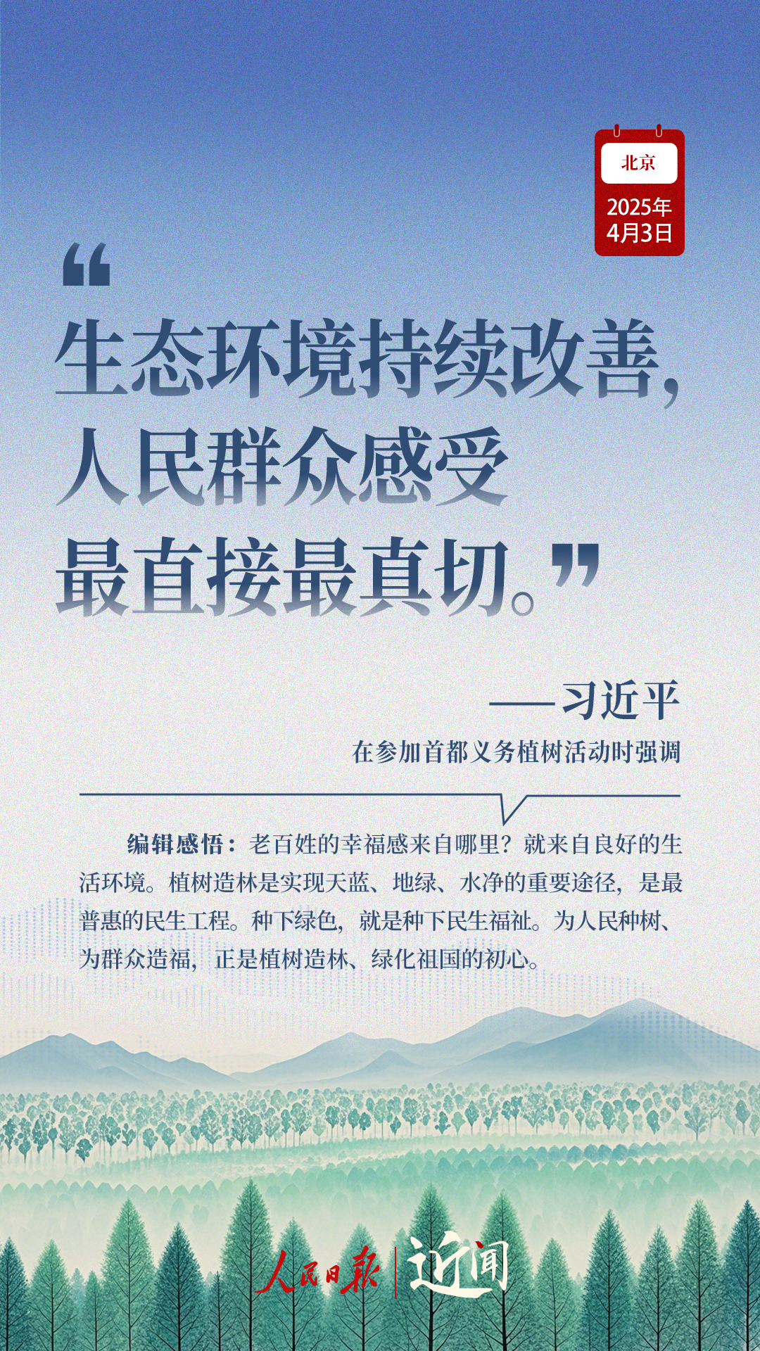 “生態(tài)環(huán)境持續(xù)改善,人民群眾感受最直接最真切。”“義務植樹是全民行動,要一代接著一代干下去?!痹谥矘洮F場,從這些話語讀懂一份堅持、一種情懷。