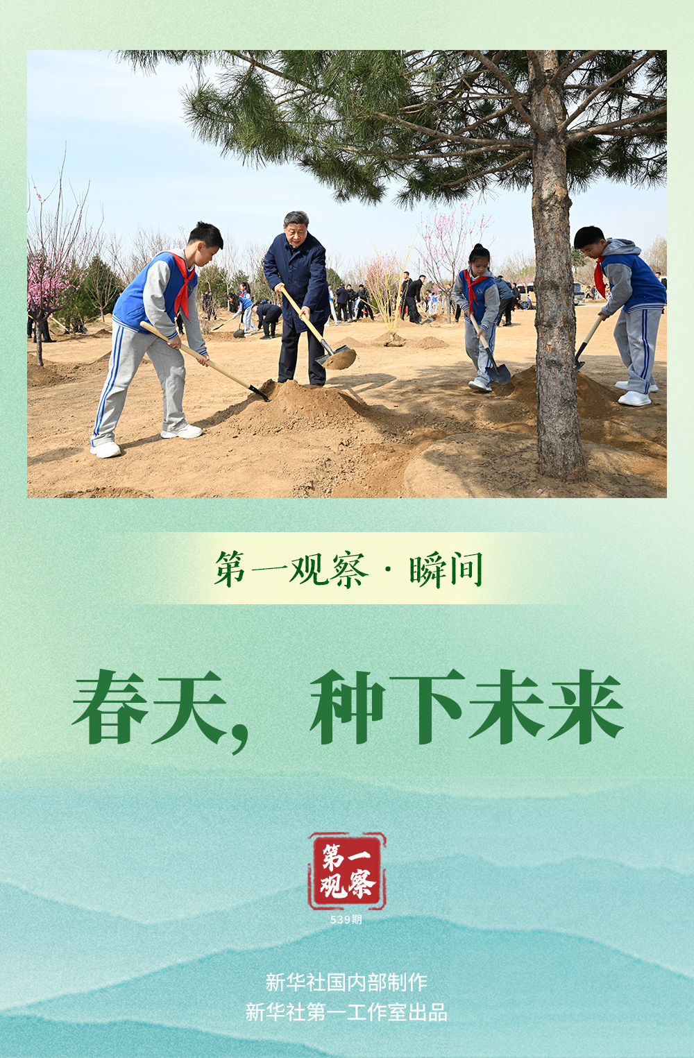 今天種下新綠,小小樹苗將長成參天大樹、連片成林,祖國大地綠意盎然、生機(jī)勃發(fā)。今天播撒希望,孩子們終將成為社會(huì)發(fā)展的棟梁之才,強(qiáng)國建設(shè)、民族復(fù)興更有接續(xù)奮斗的力量。