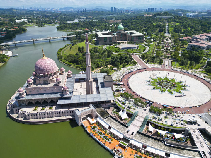 這是2025年3月18日拍攝的馬來(lái)西亞行政首都布特拉賈亞景色(無(wú)人機(jī)照片)。新華社記者 程一恒 攝