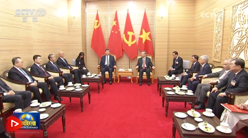 習(xí)近平指出,這次訪問時間雖短,但活動豐富、成果豐碩。雙方重申共同壯大世界社會主義事業(yè)的政治意愿,都期待朝著“六個更”總體目標(biāo)全面推進(jìn)兩國戰(zhàn)略合作,都表示抵御外部風(fēng)險挑戰(zhàn),維護(hù)地區(qū)和平穩(wěn)定和國際公平正義。我對中越關(guān)系發(fā)展前景充滿信心。雙方要全面落實這次訪問成果,持續(xù)推進(jìn)中越命運共同體建設(shè)。