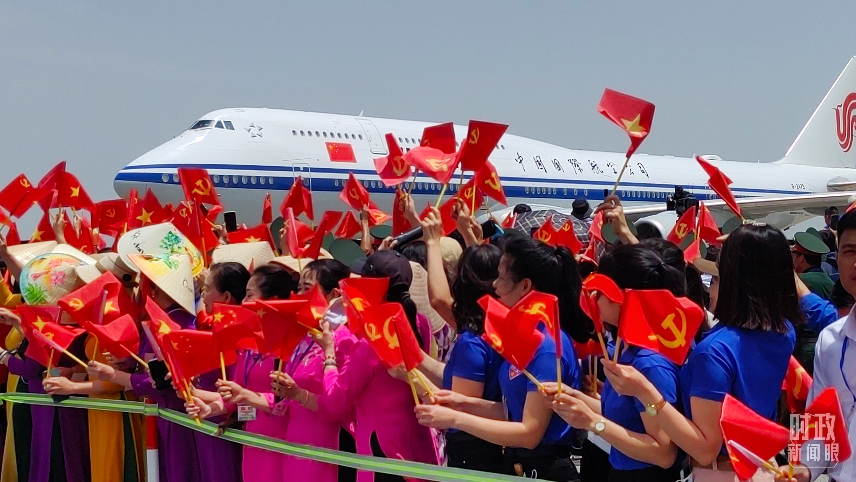 14日中午,習(xí)近平總書記乘坐的專機抵達越南河內(nèi)內(nèi)排國際機場。