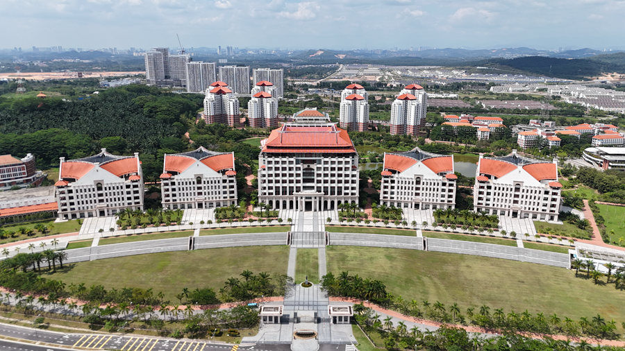 馬來(lái)西亞雪蘭莪州的廈門大學(xué)馬來(lái)西亞分校教學(xué)樓全貌(無(wú)人機(jī)拍攝)。新華社發(fā)(廈門大學(xué)馬來(lái)西亞分校供圖)