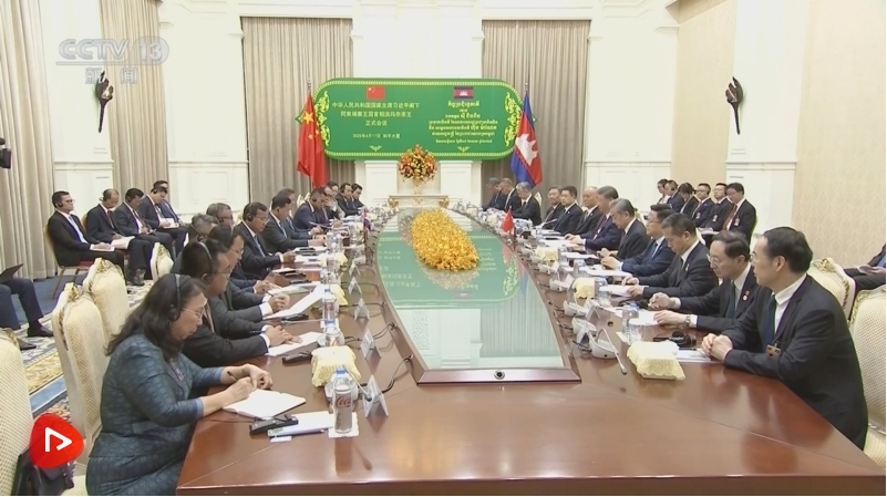 4月17日晚,國(guó)家主席習(xí)近平同柬埔寨首相洪瑪奈在金邊和平大廈舉行會(huì)談。兩國(guó)領(lǐng)導(dǎo)人一致同意攜手構(gòu)建新時(shí)代全天候中柬命運(yùn)共同體,宣布2025年為“中柬旅游年”。