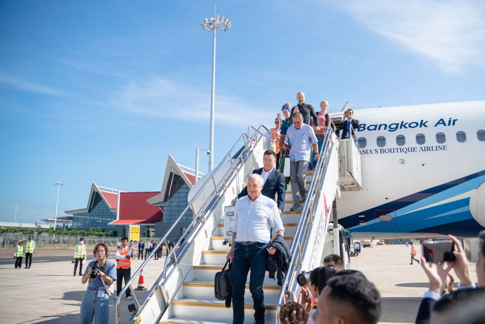 2023年10月16日,由中國企業(yè)在海外以“BOT模式(建設-運營-移交)”建設的柬埔寨暹粒吳哥國際機場通航運營。這是該機場首架進港客機乘客走下飛機。