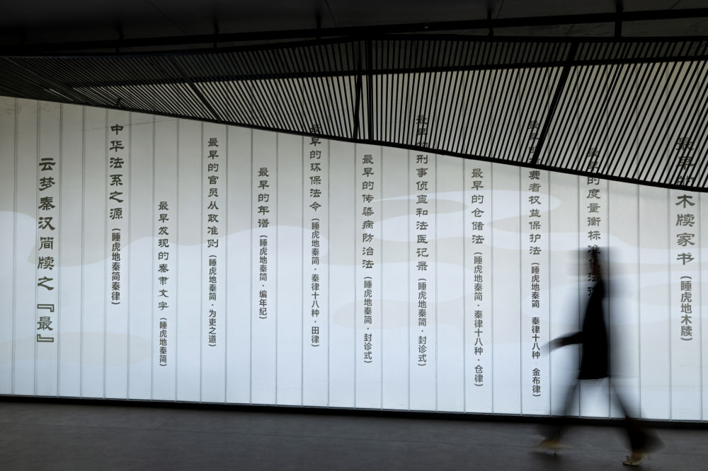 2024年4月15日,觀眾在湖北云夢(mèng)縣博物館睡虎地秦簡(jiǎn)展廳參觀。睡虎地秦簡(jiǎn)被發(fā)現(xiàn)于1975年,是中國考古史上首次發(fā)現(xiàn)的秦簡(jiǎn)。