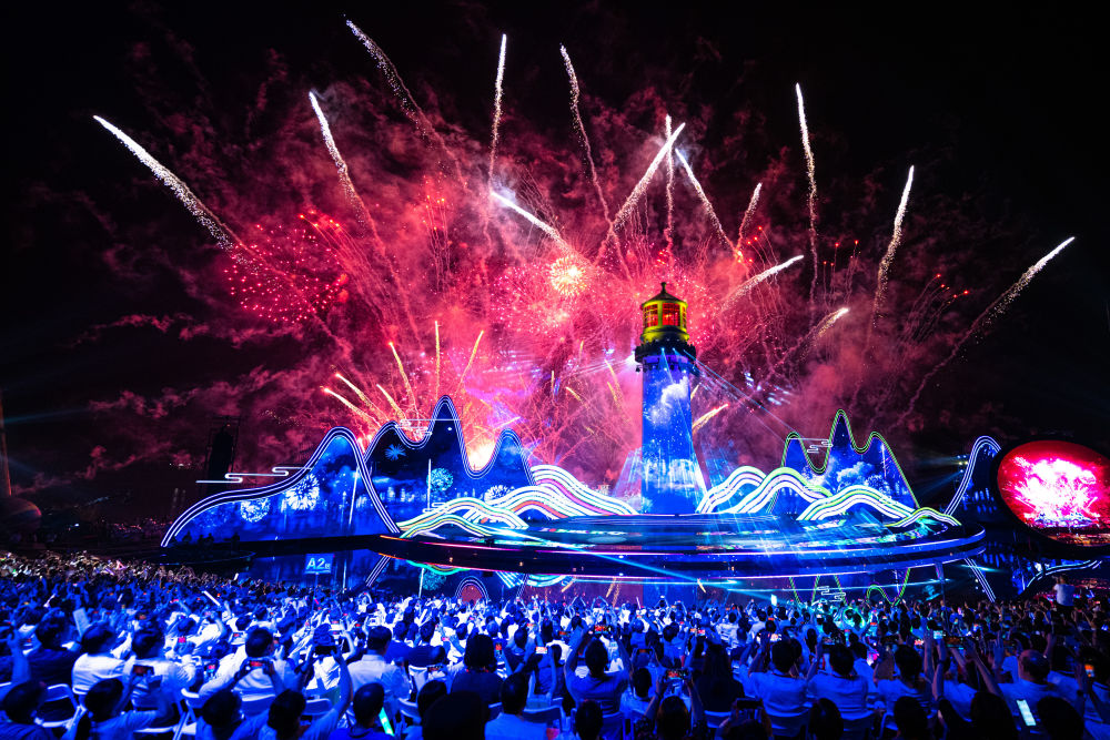 2023年9月16日,第十四屆中國長江三峽國際旅游節(jié)在湖北宜昌市燈塔廣場(chǎng)開幕,這是觀眾在開幕式現(xiàn)場(chǎng)觀看表演。生態(tài)搭臺(tái)、文旅唱戲,長江三峽國際旅游節(jié)是近些年三峽庫區(qū)把綠水青山轉(zhuǎn)變成“金山銀山”的生動(dòng)寫照。