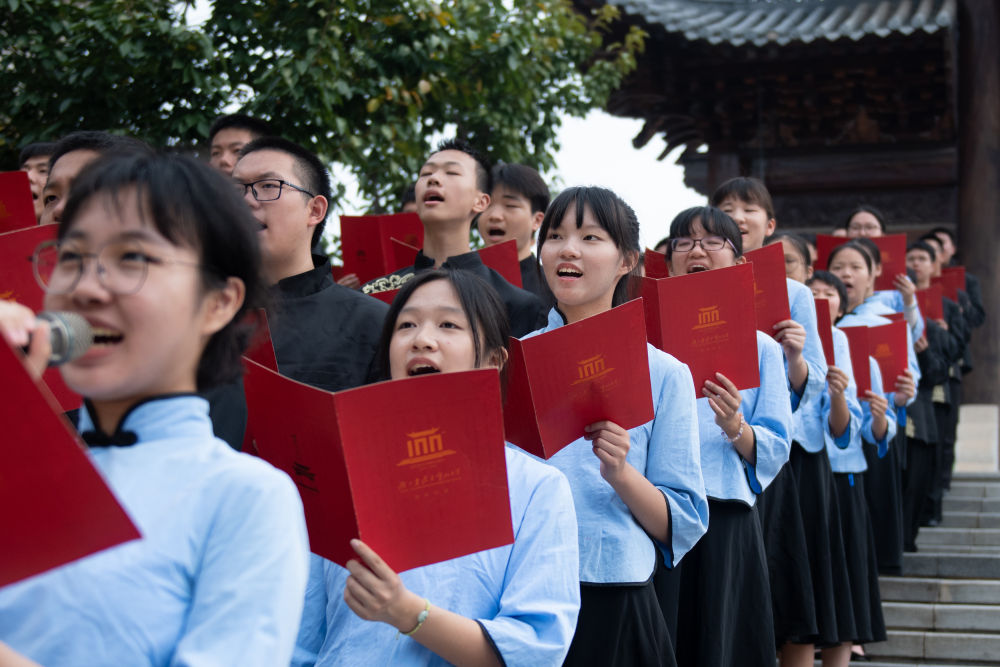 2023年9月4日,武漢市武昌區(qū)2023年秋季開學(xué)思政課在湖北省武昌實(shí)驗(yàn)中學(xué)開講,這是學(xué)生在誦讀《惟楚有材賦》。這堂思政課以“傳承武昌古城千年文脈,爭(zhēng)做守正創(chuàng)新時(shí)代新人”為主題,通過“實(shí)景體驗(yàn)+課堂展示”的形式,講述武昌古城1800年文脈的歷史與傳承,為該校學(xué)生帶來一場(chǎng)沉浸式課堂體驗(yàn)。