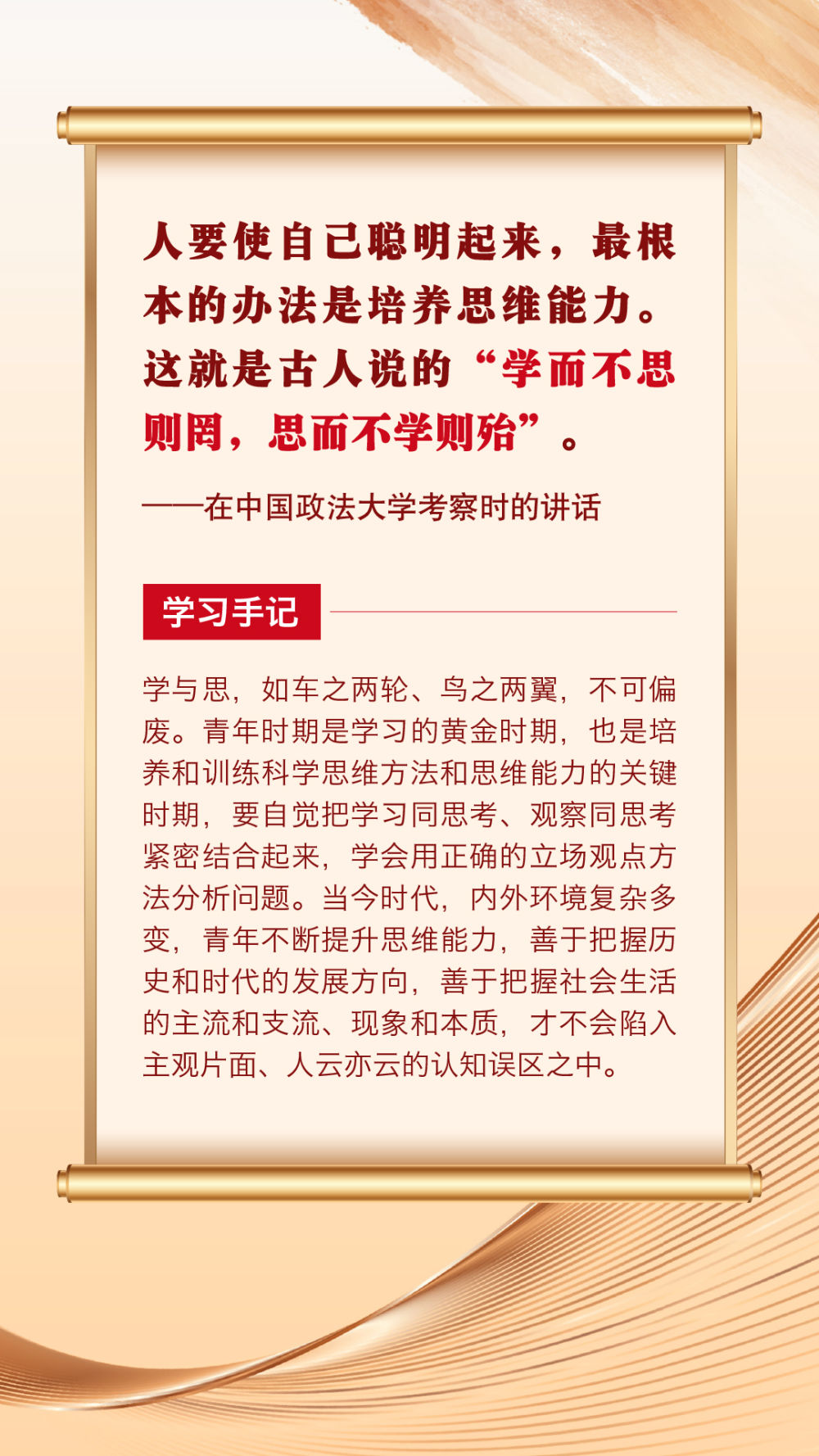 “青年者,國(guó)家之魂?!鼻嗄暌淮院畏N精神風(fēng)貌站上時(shí)代舞臺(tái),關(guān)乎祖國(guó)的明天、民族的未來(lái)。黨的十八大以來(lái),習(xí)近平總書記圍繞青年成長(zhǎng)成才作出許多重要論述。其中,有信手拈來(lái)的精妙典故,有貫古通今的廣征博引,引領(lǐng)廣大青年不斷在中華文化的浸潤(rùn)中堅(jiān)定中國(guó)心、涵養(yǎng)民族魂,成長(zhǎng)為堪當(dāng)復(fù)興重任的時(shí)代新人。
